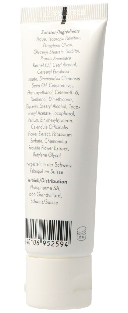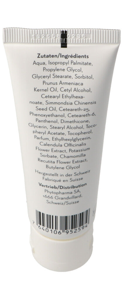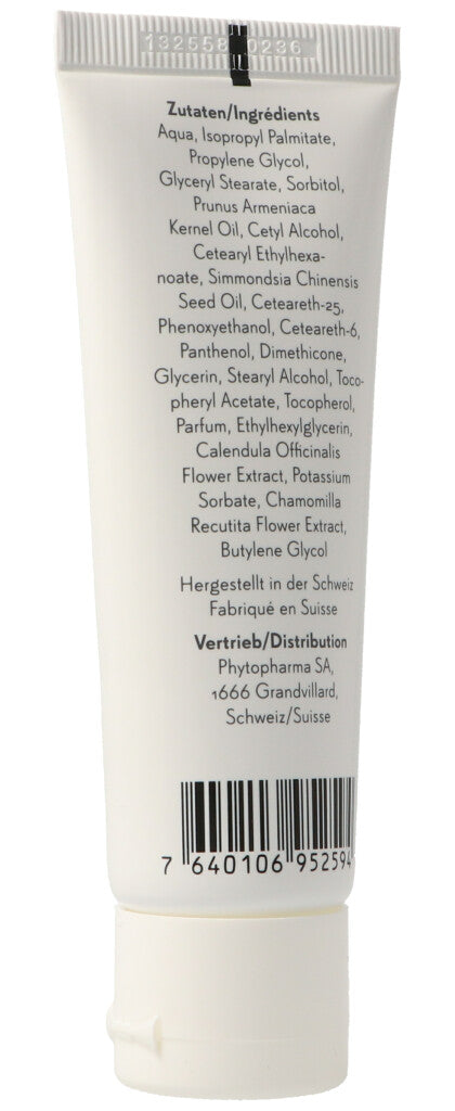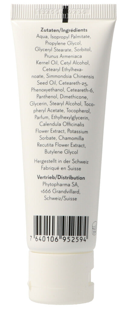 Aqua, Isopropyl Palmitate, Propylene Glycol, Glyceryl Stearate, Sorbitol, Prunus Armeniaca Kernel Oil, Cetyl Alcohol, Cetearyl Ethylhexa noate, Simmondsia Chinensis Seed Oil, Ceteareth - 25, Phenoxyethanol, Ceteareth - 6, Panthenol, Dimethicone, Glycerin, Stearyl Alcohol, Toco pheryl Acetate, Tocopherol, Parfum, Ethylhexylglycerin, Calendula Officinalis Flower Extract, Potassium Sorbate, Chamomilla Recutita Flower Extract, Butylene Glycol..