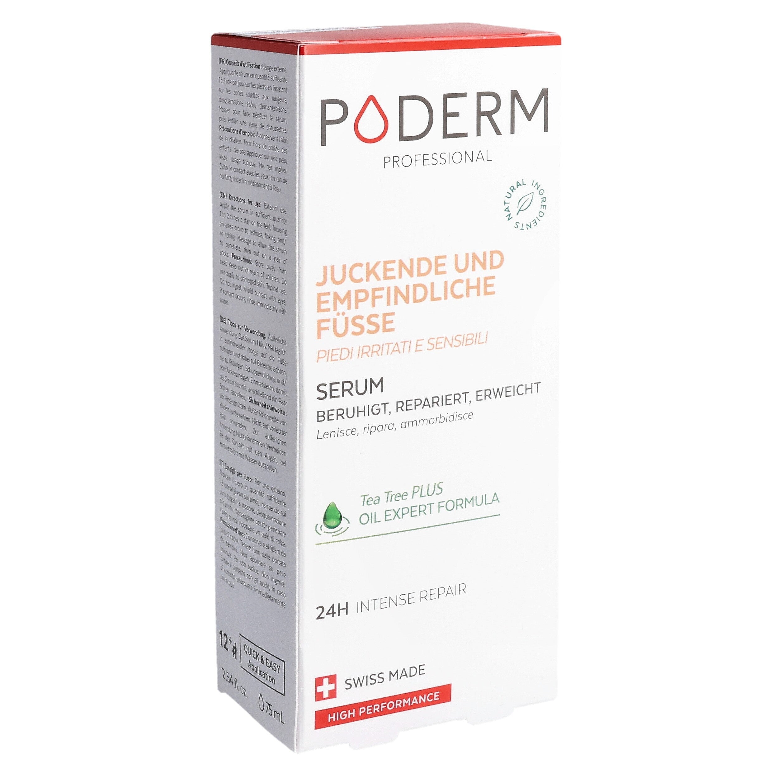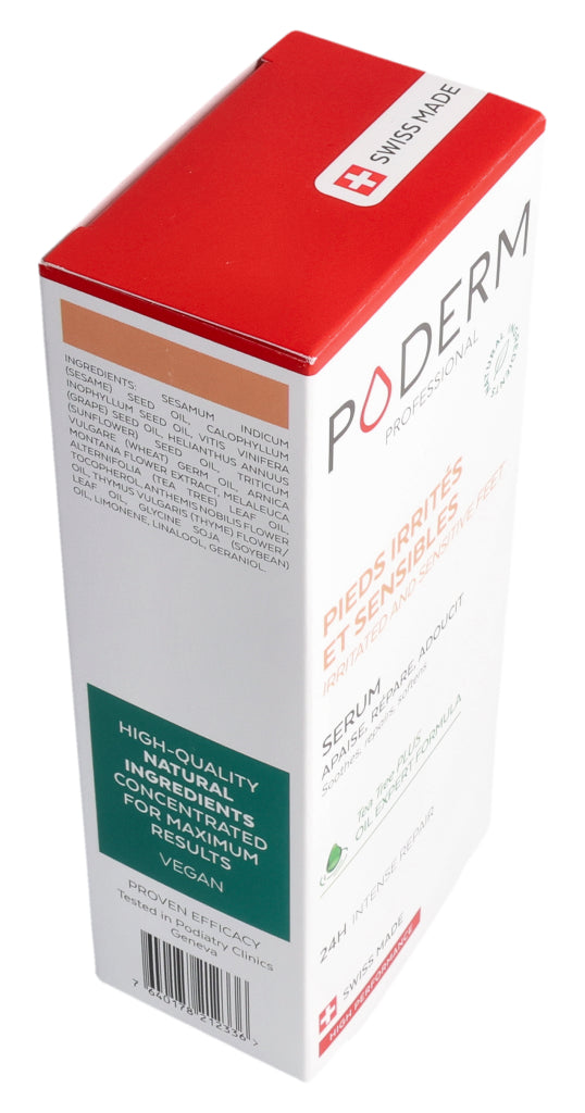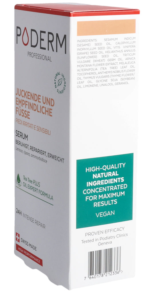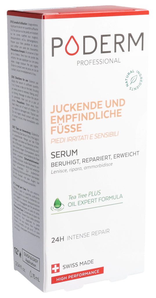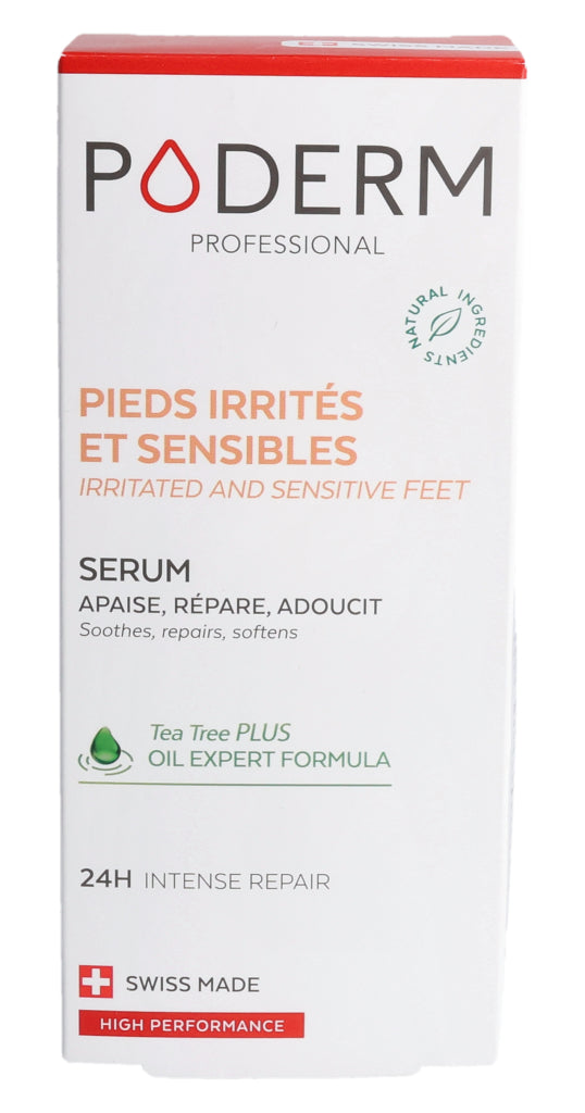 Das PODERM® Irritierte und empfindliche Füße Serum wurde speziell für Menschen mit empfindlicher, trockener und zu Neurodermitis neigender Haut entwickelt, die gereizte, erhitzte oder trockene Stellen aufweisen kann.