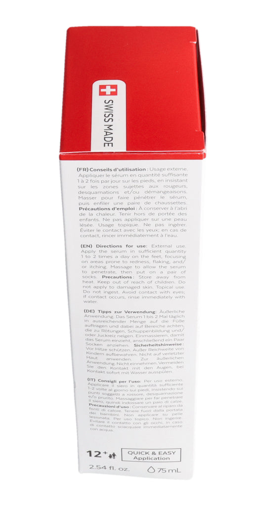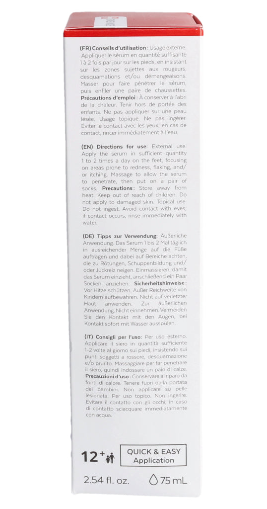 Betonen Sie die Stellen, die zu Rötungen, Schuppenbildung und/oder Juckreiz neigen. Massieren Sie das Serum ein und ziehen Sie anschließend ein Paar Socken an.