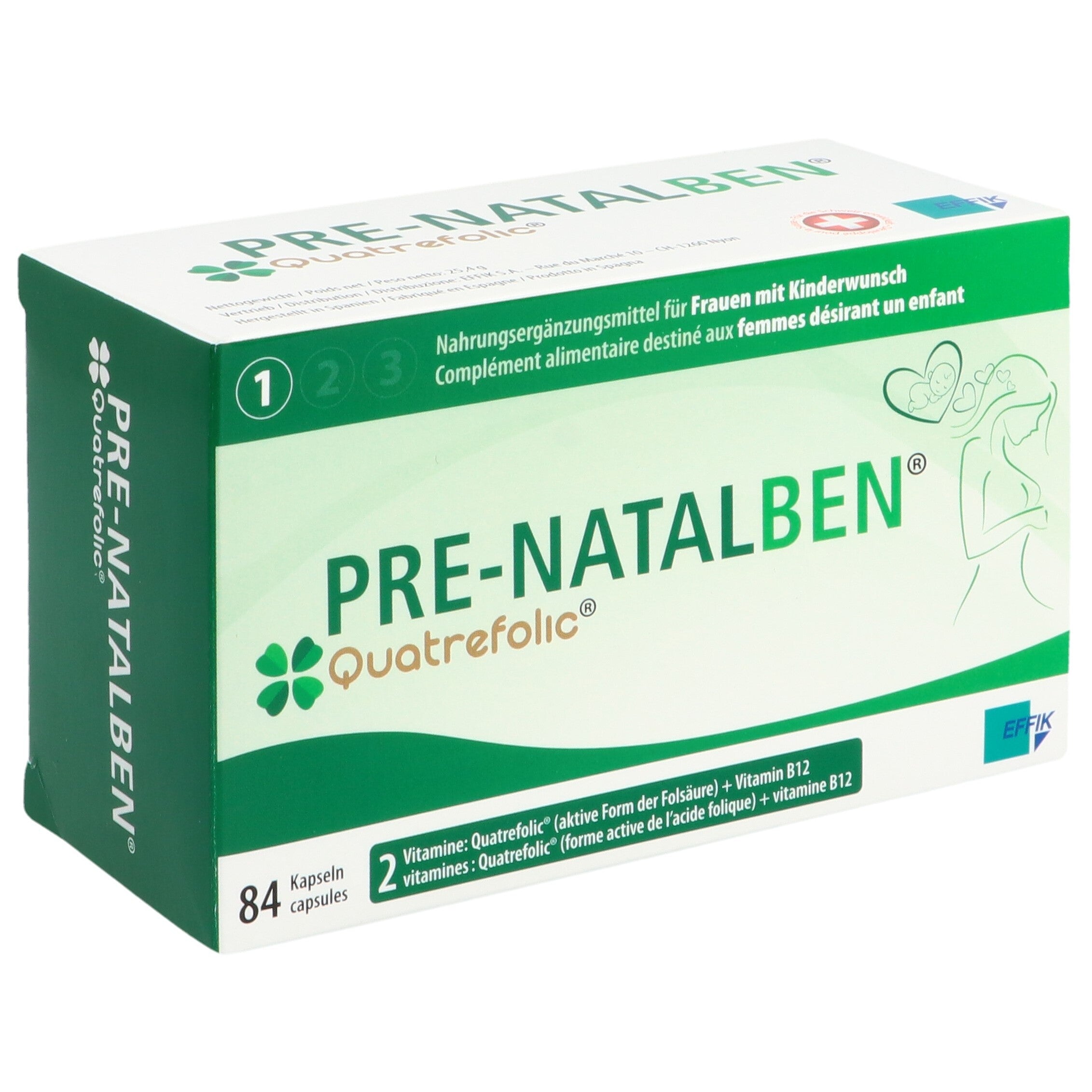Pre-Natalben® ist ein Nahrungsergänzungsmittel, das entwickelt wurde, um den besonderen Nährstoffbedarf während der Zeit vor der Empfängnis (vor dem Eintritt der Schwangerschaft) zu decken. Jede Pre-Natalben® Kapsel enthält zwei Vitamine: Folsäure (Vitamin B9 oder Folat in der Form von Quatrefolic®) und Vitamin B12 (Cobalamin).