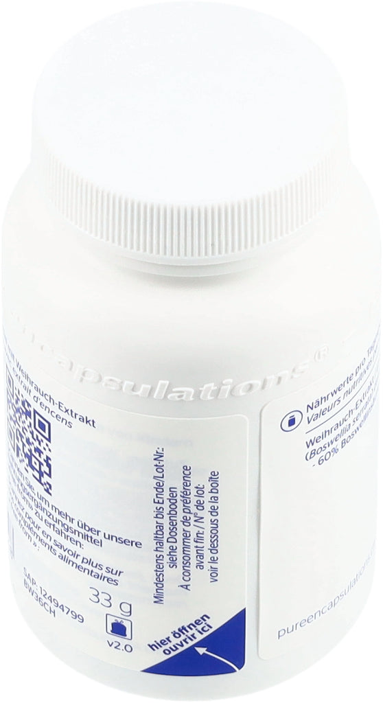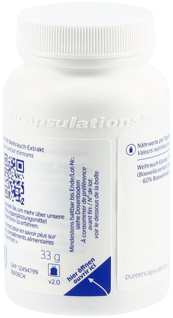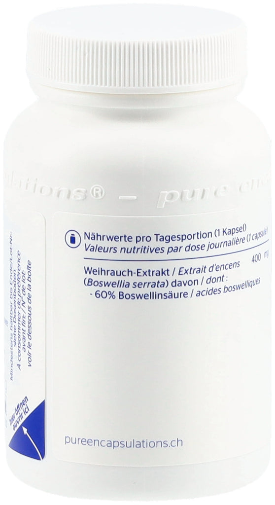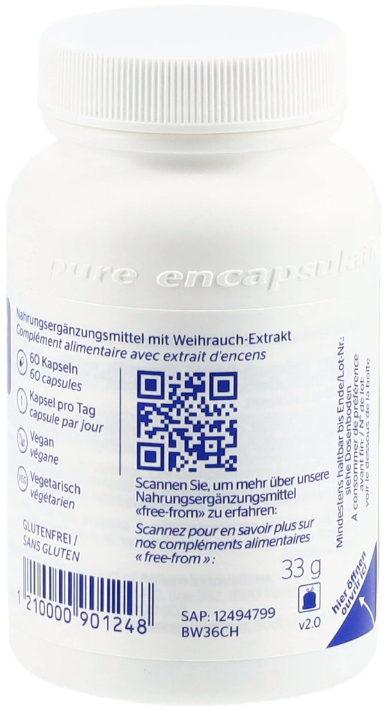 • Wie alle Pflanzenextrakte von Pure Encapsulations® ist auch der Weihrauch-Extrakt standardisiert und nach höchstmöglichen Qualitätsstandards entwickelt und produziert und somit maximal verträglich und ideal bioverfügbar