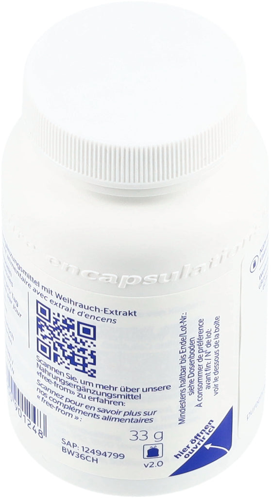 Weihrauch-Extrakt (Boswellia serrata - Harz), Kapsel (Hydroxypropylmethylcellulose), Füllstoff (mikrokristalline Cellulose).