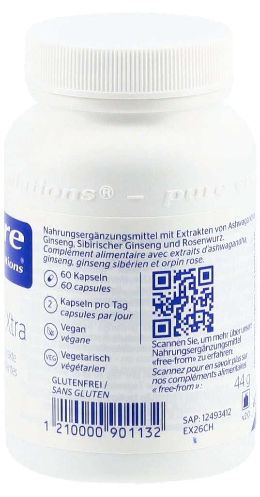 • Pflanzenextrakt-Kombination aus wertvollen Kräutern, wie Panax-Ginseng, Rosenwurz (Rhodiola rosea), Taigawurzel und Ashwagandha. Die vier Extrakte in diesem Produkt sind standardisiert und nach den höchsten Qualitätsstandards entwickelt, die ihm maximale Verträglichkeit und eine ideale Bioverfügbarkeit verleihen.
