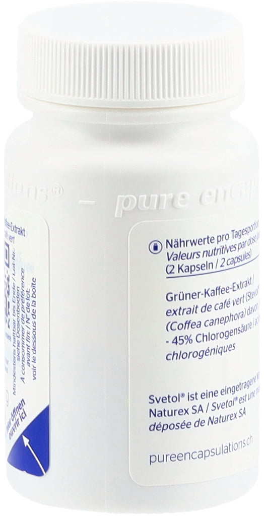 • Grüner Kaffee-Extrakt (Svetol®) ist ein 100 % pflanzlich, entkoffeinierter Pflanzenextrakt aus ungerösteten grünen Kaffeebohnen.