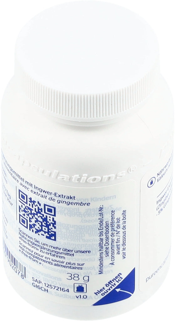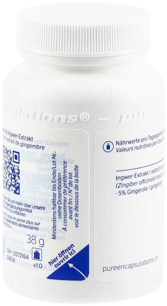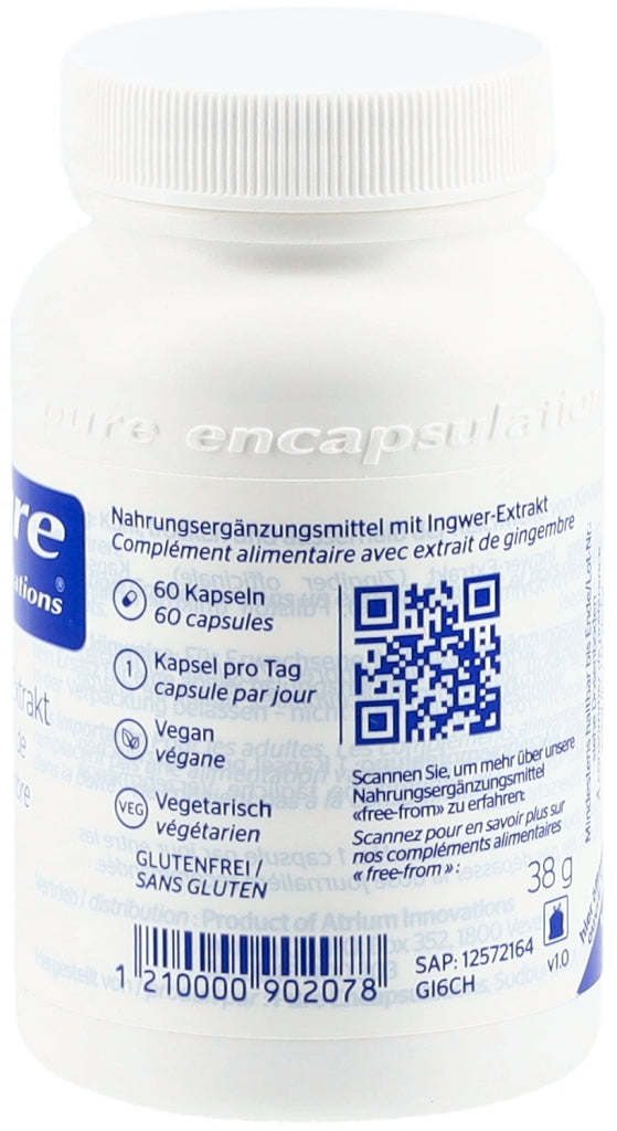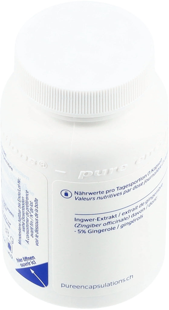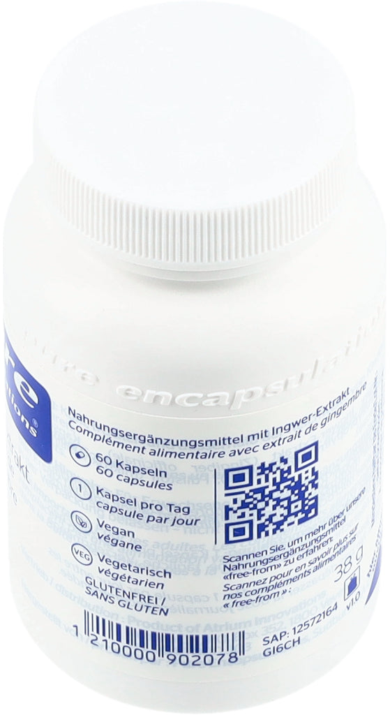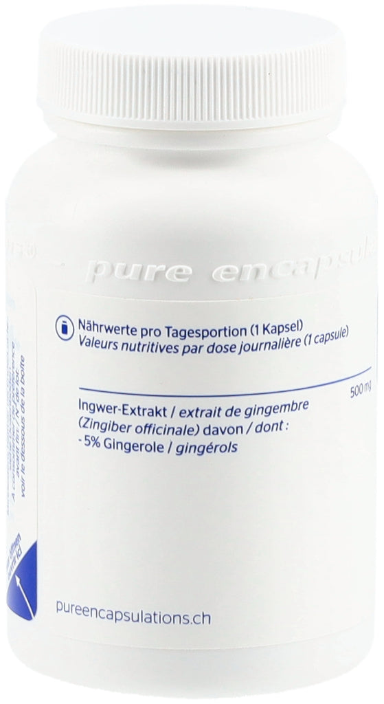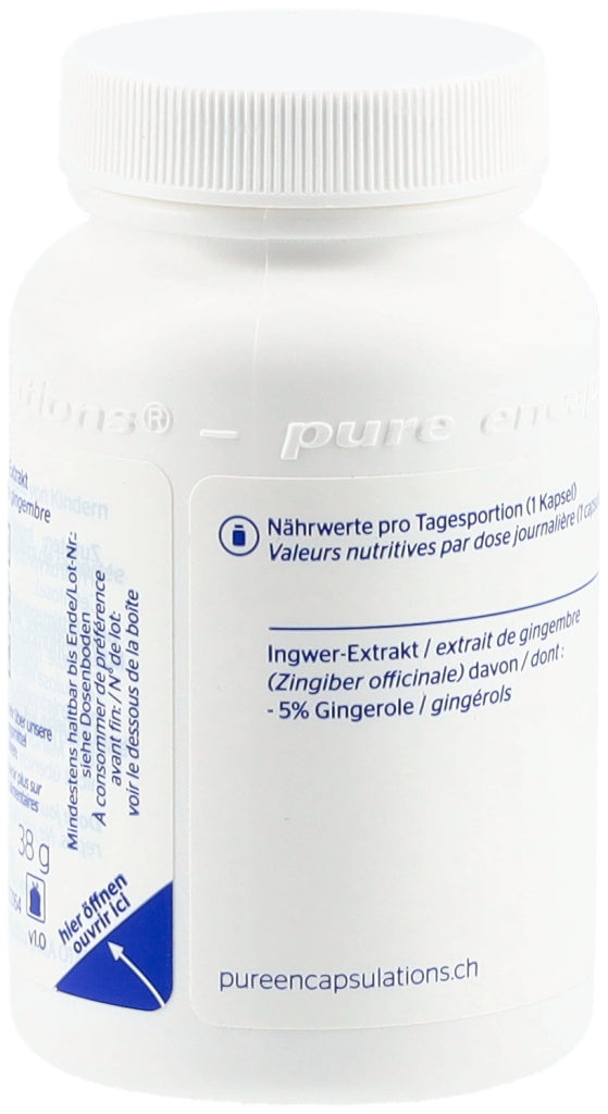 Zingiber officinale, auch bekannt als Ingwer, gehört zur Familie der Ingwergewächse. Der Extrakt aus dem Wurzelstock (Zingiberis rhizoma) enthält den Wirkstoff Gingerol. Gingerol wird traditionell zur Unterstützung der Verdauung verwendet. Die Kapseln von Pure Encapsulations® gewährleisten einen konstanten Gehalt an Gingerol.