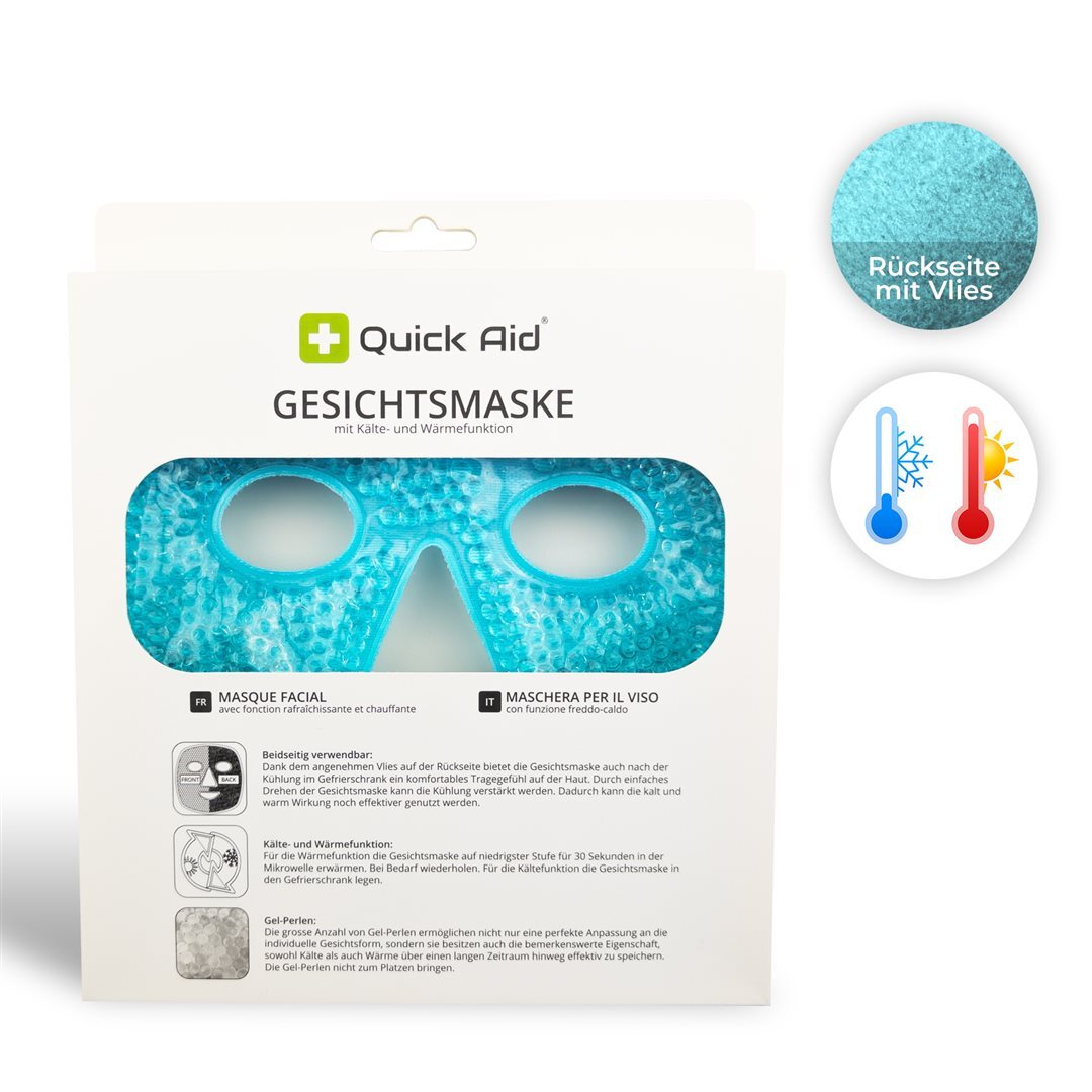 Kälte- und Wärmefunktion: Für die Wärmefunktion die Gesichtsmaske auf niedrigster Stufe für 30 Sekunden in der Mikrowelle erwärmen. Bei Bedarf wiederholen. Für die Kältefunktion die Gesichtsmaske in den Gefrierschrank legen.