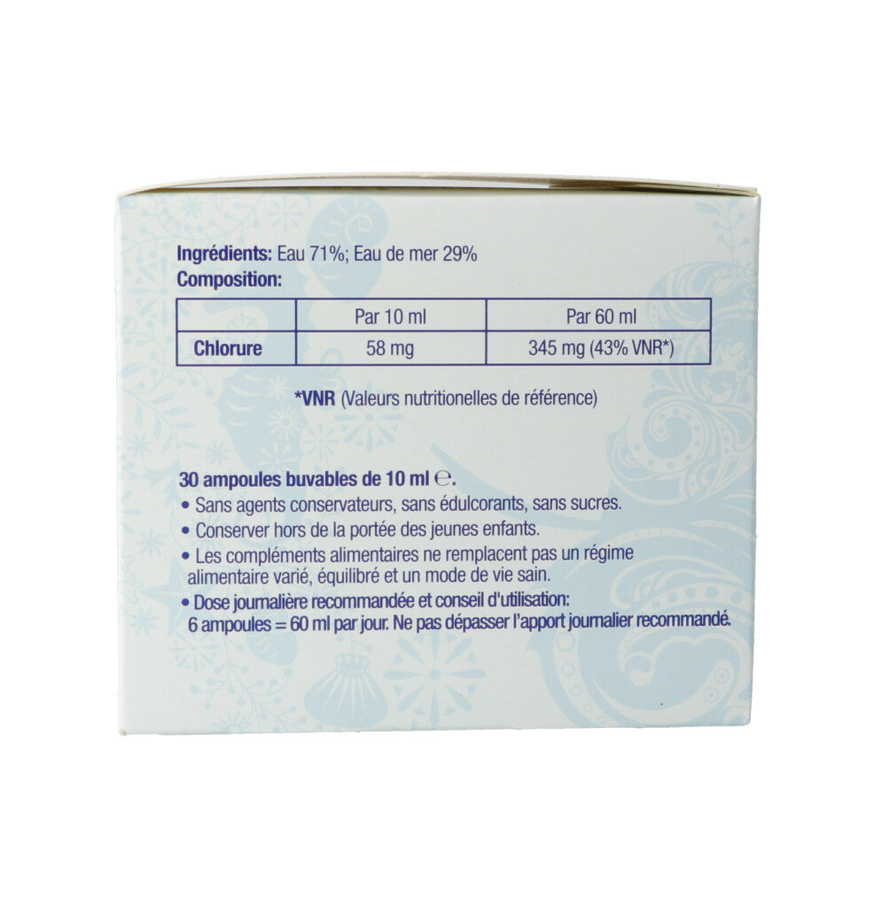 Nahrungsergänzungsmittel in Form von Trinkampullen mit kaltem mikrofiltriertem Meerwasser.