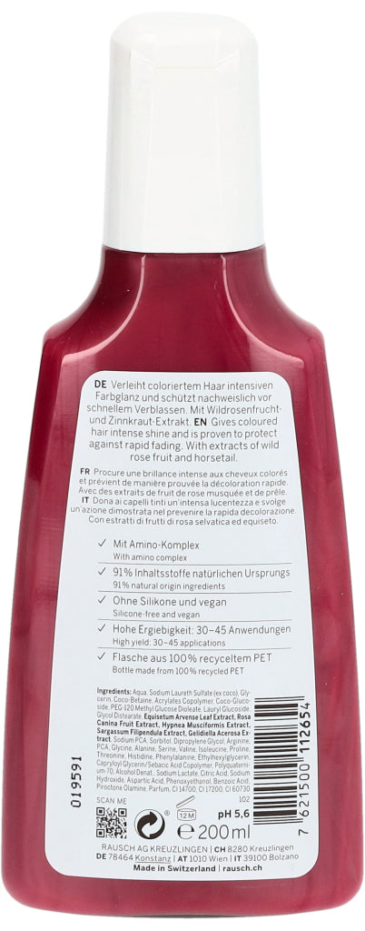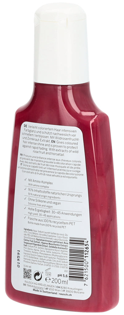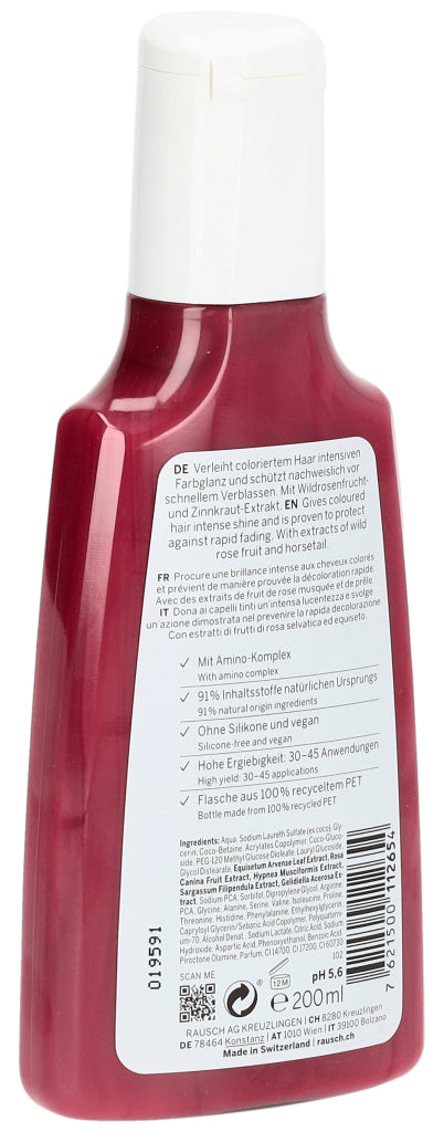 Das Farbschutz-Shampoo mit Wildrose ist für alle, die mehr Farbglanz für ihr coloriertes Haar möchten. Ob rot, blau oder grün: Das Farbschutz-Shampoo mit Wildrose reinigt Dein Haar besonders sanft, bewahrt die Farbintensität und verleiht ihm einen angenehm blumig-frischen Duft nach Wildrose, Himbeere und Bergamotte.