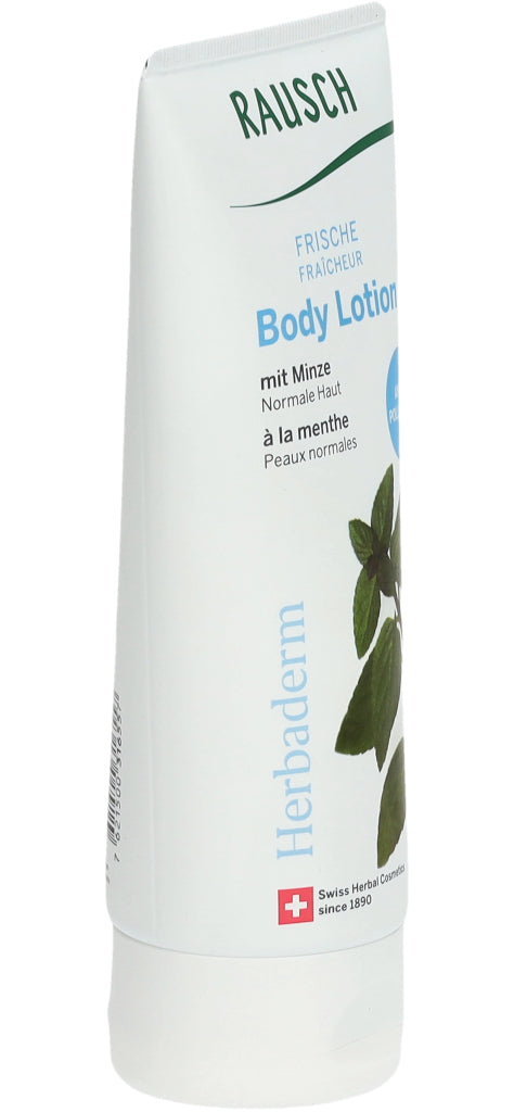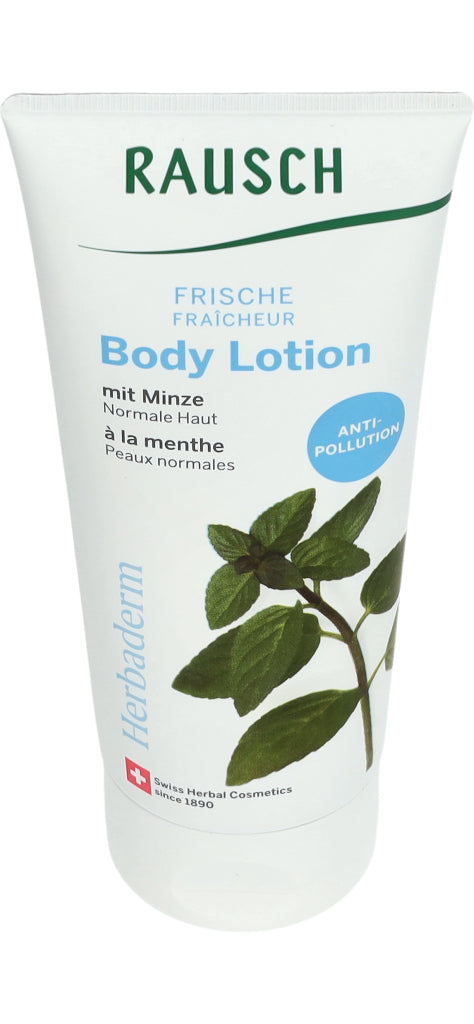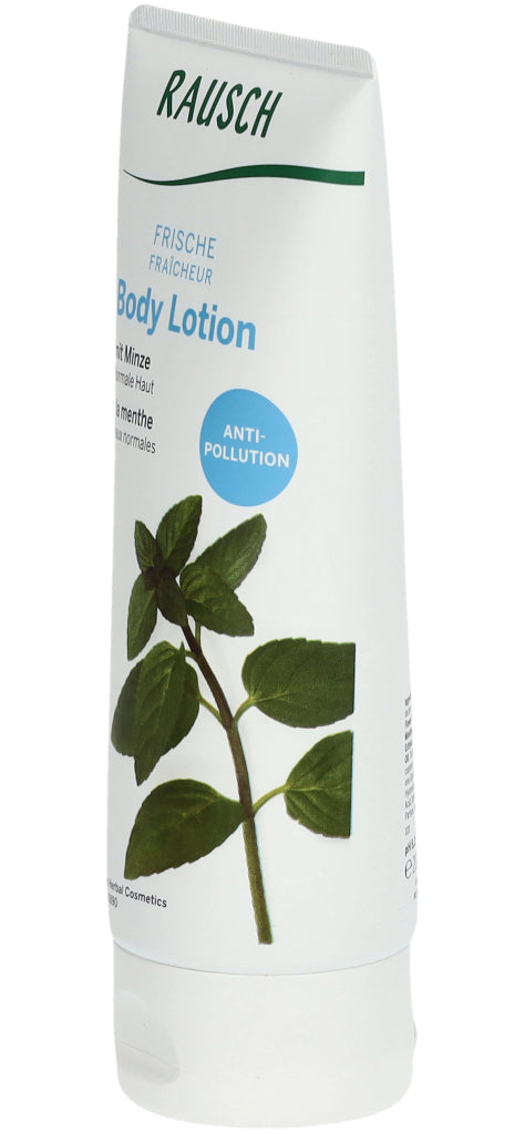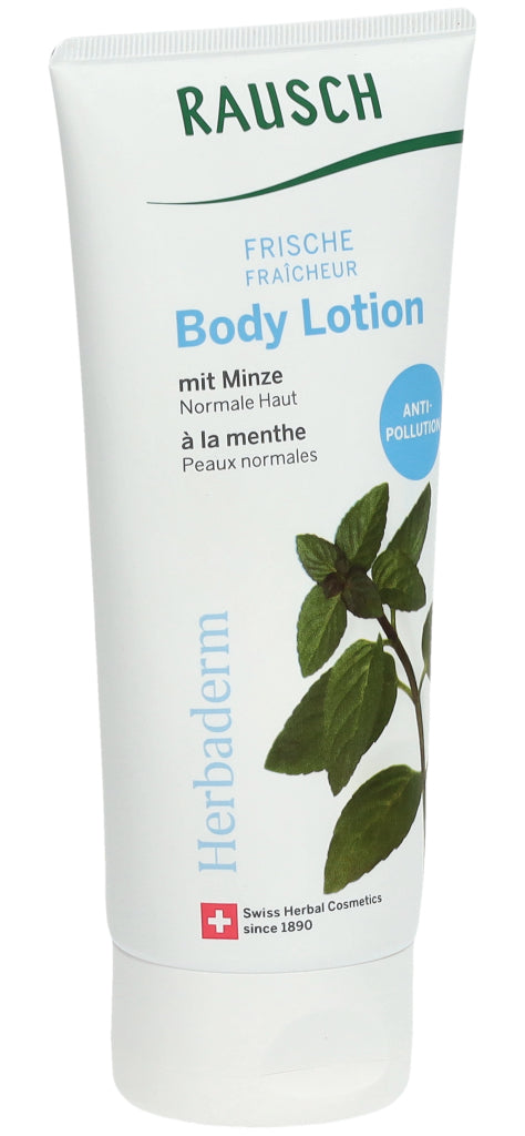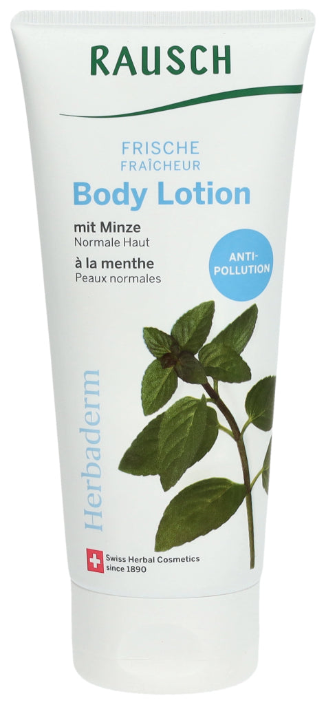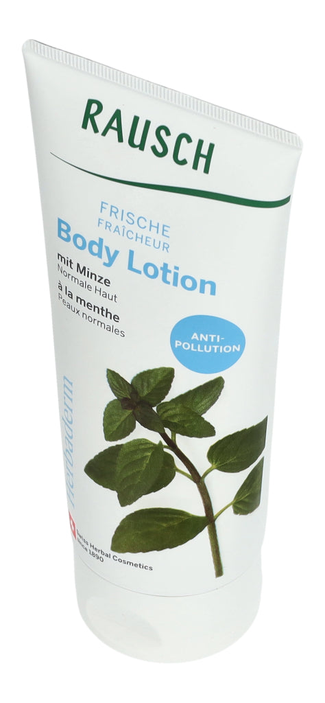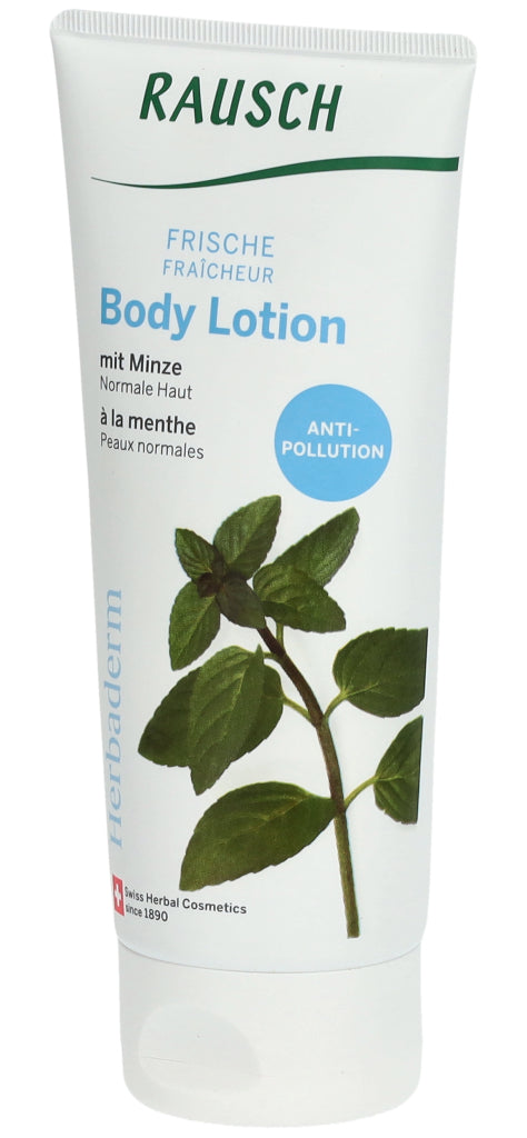 Magst du Deine Hautpflege gerne unkompliziert? Die Body Lotion mit Minze ist ein echter Alleskönner, der normale Haut mit seinem belebenden Duft nach Gletscherluft und frischer Pfefferminze täglich mit einem Frischekick versorgt. Das ist jedoch längst nicht alles, was in dieser Body Lotion steckt. Auftragen lässt sich die leichte Textur ganz easy, weil sie schnell und rückstandslos einzieht und sofort ein angenehmes Hautgefühl hinterlässt. Ein Anti-Pollution-Wirkstoff sorgt dafür, dass die Haut vor fiesen Partikeln aus der Umwelt geschützt ist. Und dank ihres angenehm kühlenden Effekts ist sie an sonnigen Tagen perfekt als After-Sun-Pflege geeignet. Ob beim Stadtbummel in der Grossstadt oder in den Strandferien – die Body Lotion mit Minze ist ein sorgloser Begleiter in vielen Lebenslagen. Um das zu erreichen, haben die RAUSCH Expertinnen in Kreuzlingen am Bodensee die allerbesten Inhaltsstoffe aus der Natur ausgesucht. Das Resultat ist eine silikonfreie und vegane Formulierung, die zu 93 % aus Inhaltsstoffen natürlichen Ursprungs besteht. Die Body Lotion mit Minze glänzt unter anderem mit feuchtigkeitsspendendem Panthenol, beruhigendem Allantoin und hochwertigen Extrakten aus Rosmarin, Ringelblume, Pfefferminze aus Wildsammlung und Macadamiaöl.