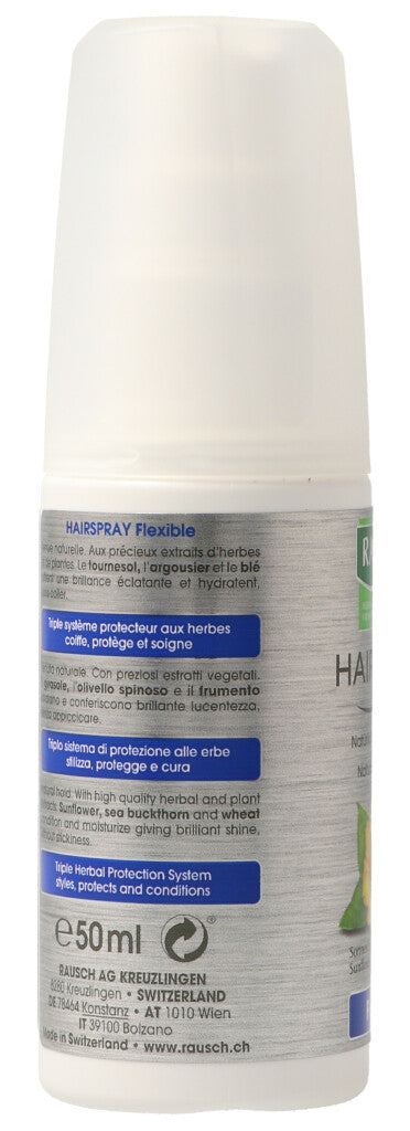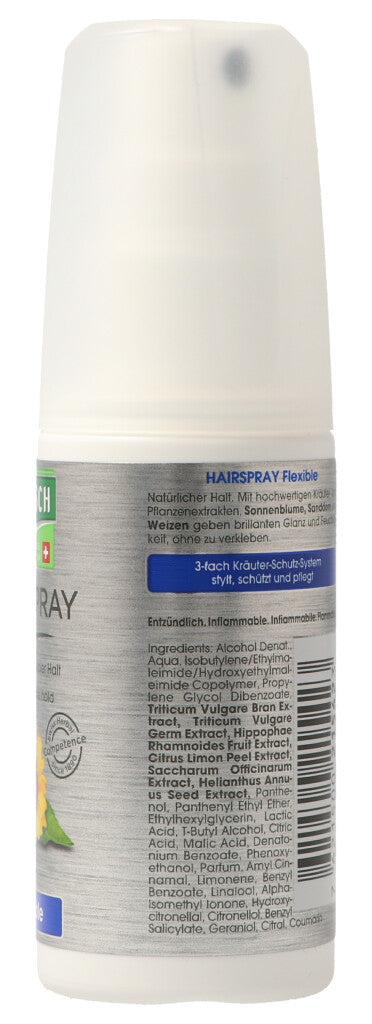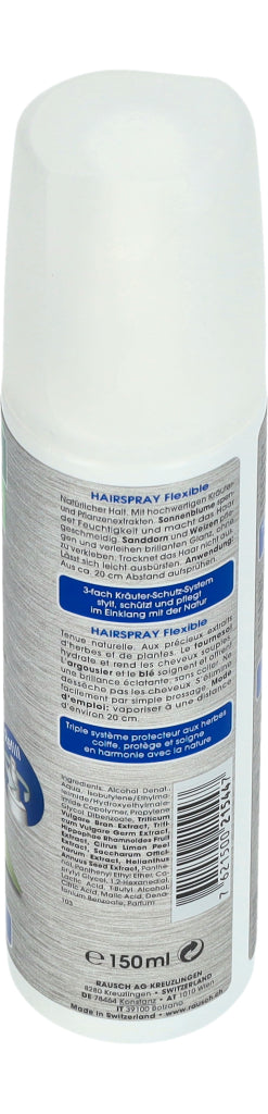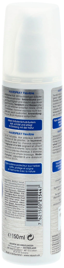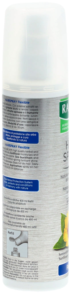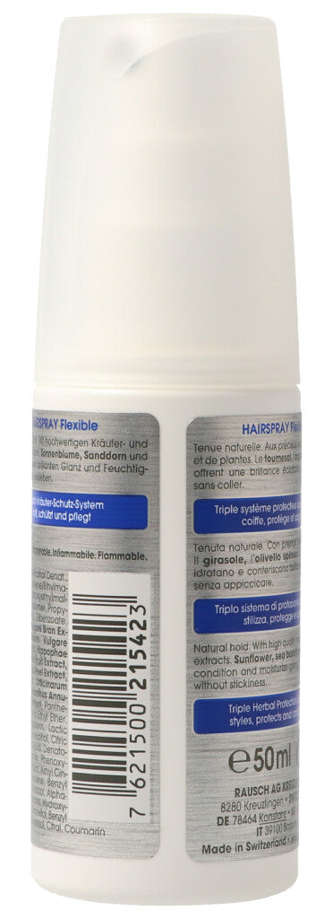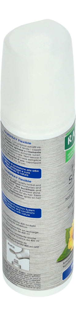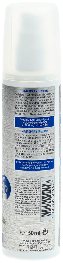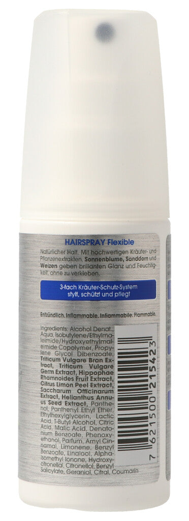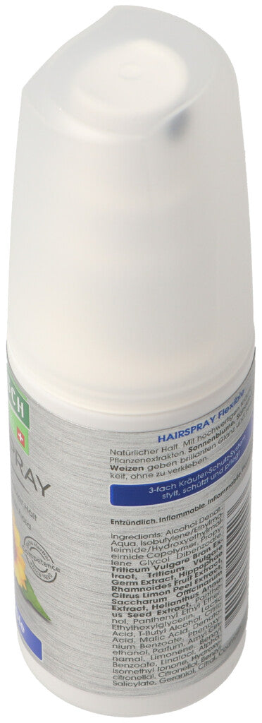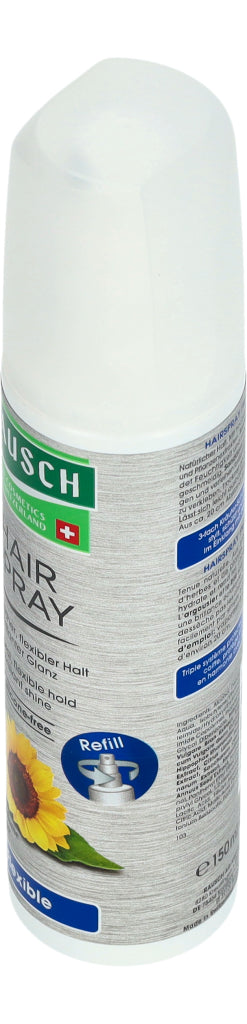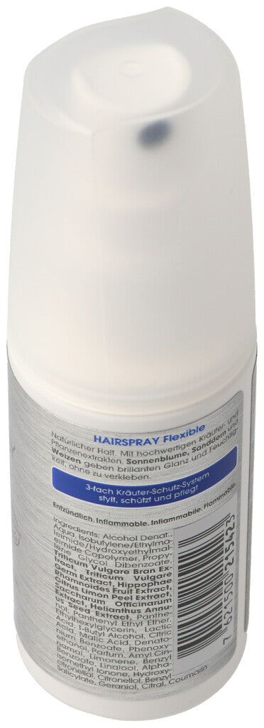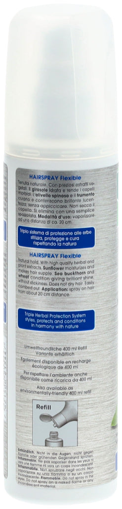 Das hochwertige Haarspray aus natürlichen Extrakten von Sonnenblume, Sanddorn und Weizen verleiht dem Haar einen flexiblen Halt und natürlichen Glanz, ohne zu beschweren. Das Pumpspray enthält keine Aerosole. Das Produkt wird aus ca. 20 cm Abstand auf die gewünschten Haarpartien aufgesprüht. Ist auch als Nachfüllflasche erhältlich.