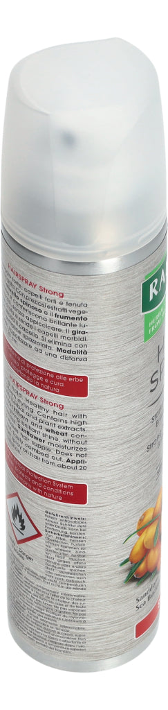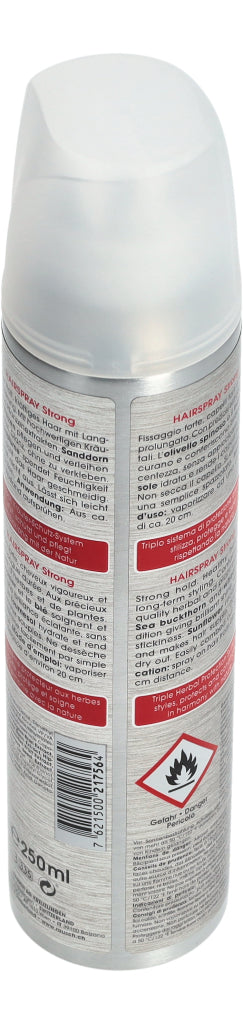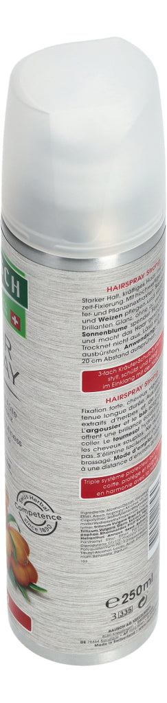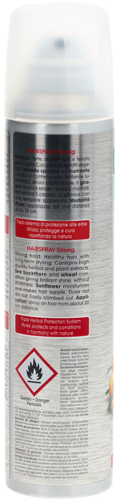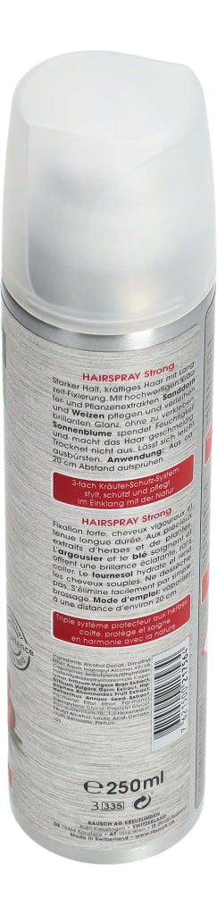Das hochwertige Haarspray aus natürlichen Extrakten von Sonnenblume, Sanddorn und Weizen verleiht dem Haar starken und langandauernden Halt, ohne zu beschweren. Das Produkt wird aus ca. 20 cm Abstand gleichmässig auf die gewünschten Haarpartien aufgesprüht. Enthält keine Silikone.