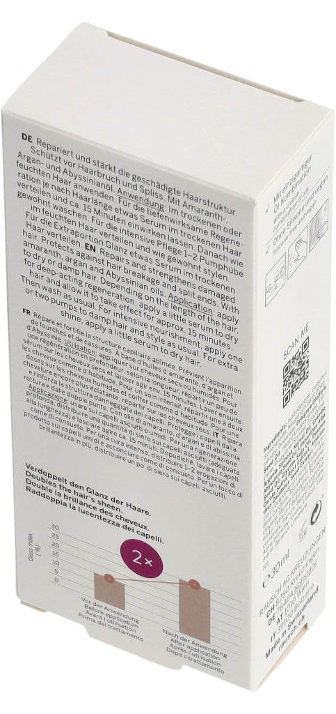 Repariert und stärkt die geschädigte Haarstruktur. Schützt vor Haarbruch und Spliss. Mit Amaranth-, Argan- und Abyssinianöl.