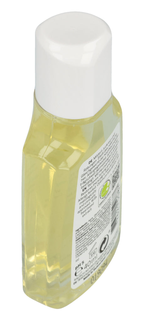 Für die besonders milder Rezeptur setzen unsere Entwicklerinnen auf 90 % Inhaltsstoffe natürlichen Ursprungs – darunter wertvollen Herzsamen-Extrakt. Die vegane und silikonfreie Rezeptur wird in Kreuzlingen am Bodensee hergestellt. Um die Hautbarriere optimal zu unterstützen, verfügt das Shampoo über einen physiologischen pH-Wert von 5,0 und kommt ganz ohne Farbstoffe aus. Die optimale Verträglichkeit ist dermatologisch-klinisch bestätigt und von Service Allergie Suisse mit dem aha! – Gütesiegel ausgezeichnet. Für die mildeste Reinigung wird bewusst auf Parfüm verzichtet, deshalb duftet es nur ganz dezent nach Noten von Baumwolle und frisch geschnittenem Gras.