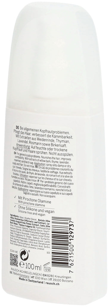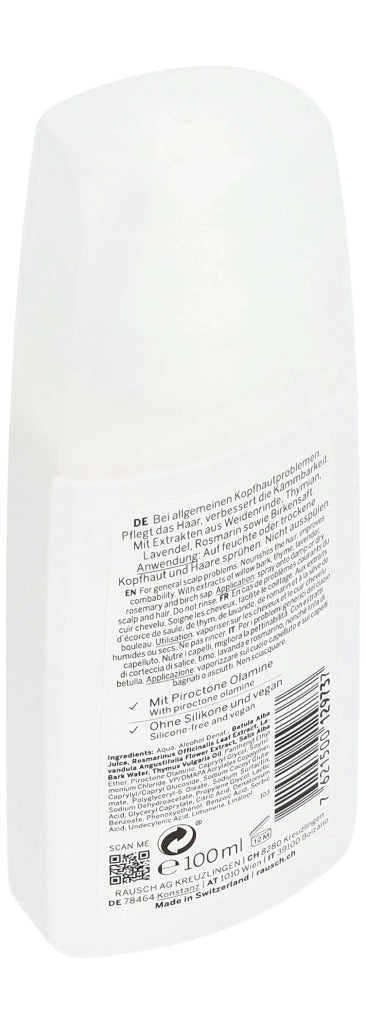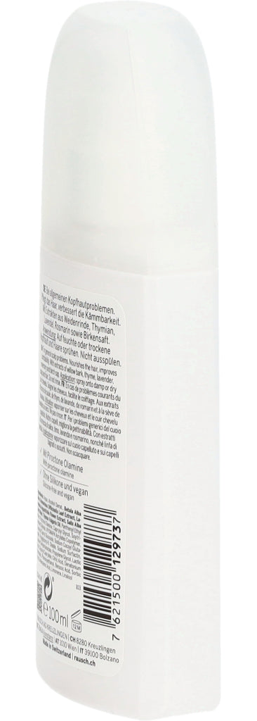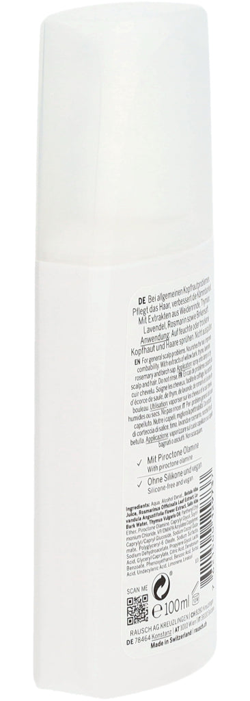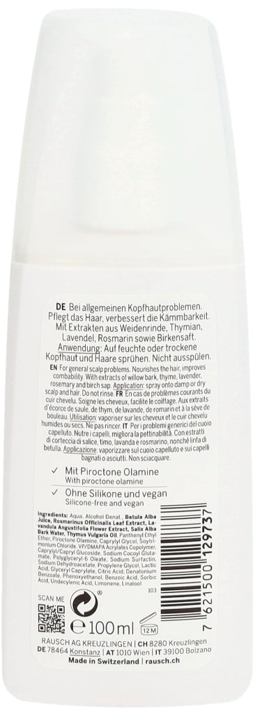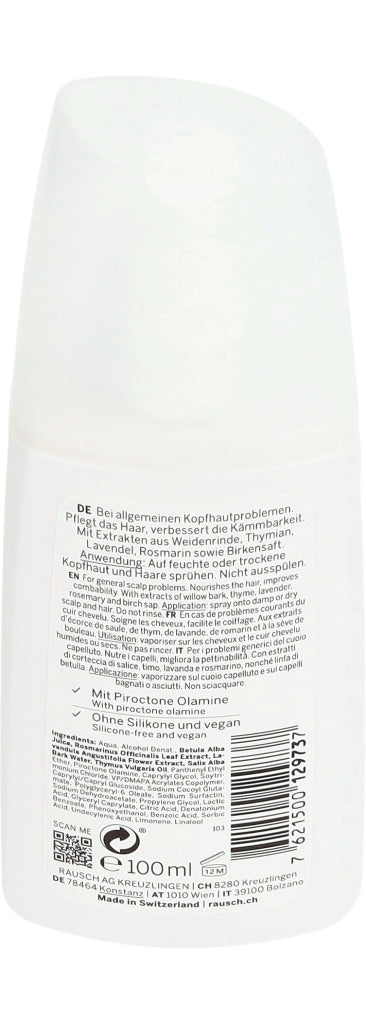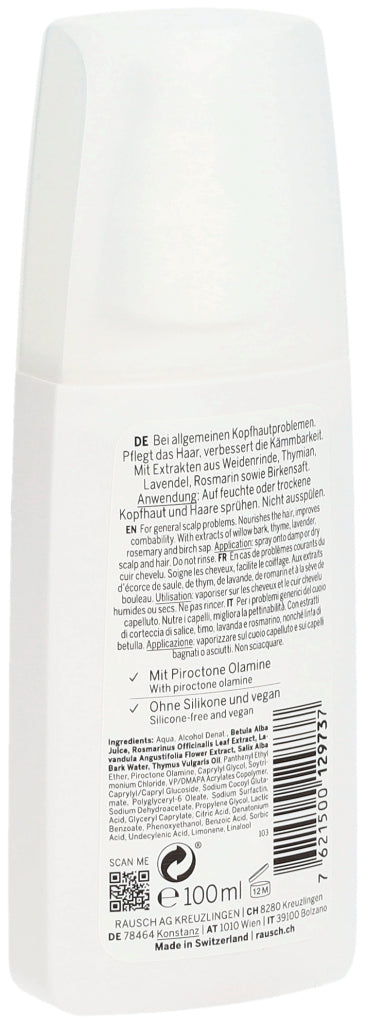 Entwickelt in der Schweiz punktet die Spezialpflege mit jeder Menge Power aus der Natur. Die milde Formel beinhaltet 97 % Inhaltsstoffe natürlichen Ursprungs, darunter Schweizer Birkensaft aus Wildsammlung sowie wertvolle Extrakte aus Weidenrinde, Rosmarin, Lavendel sowie Thymian. Der charakteristisch-herbe Duft des veganen und silikonfreien Sprays erinnert an einen aromatischen Kräutergarten. Typisch RAUSCH eben.