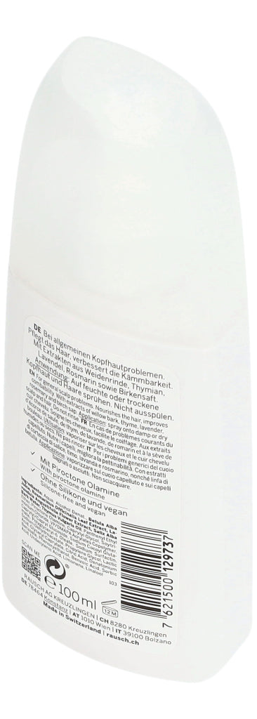 Bei allgemeinen Kopfhautproblemen. Pflegt das Haar, verbessert die Kämmbarkeit. Mit Extrakten aus Weidenrinde, Thymian, Lavendel, Rosmarin sowie Birkensaft.