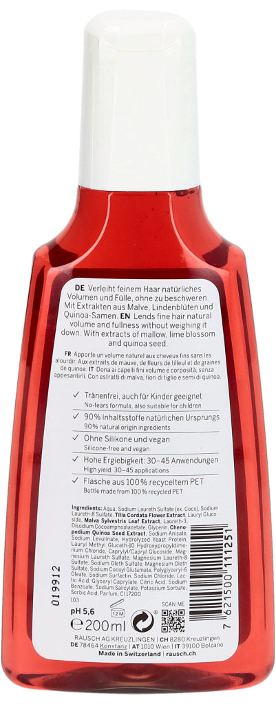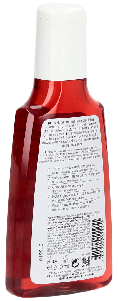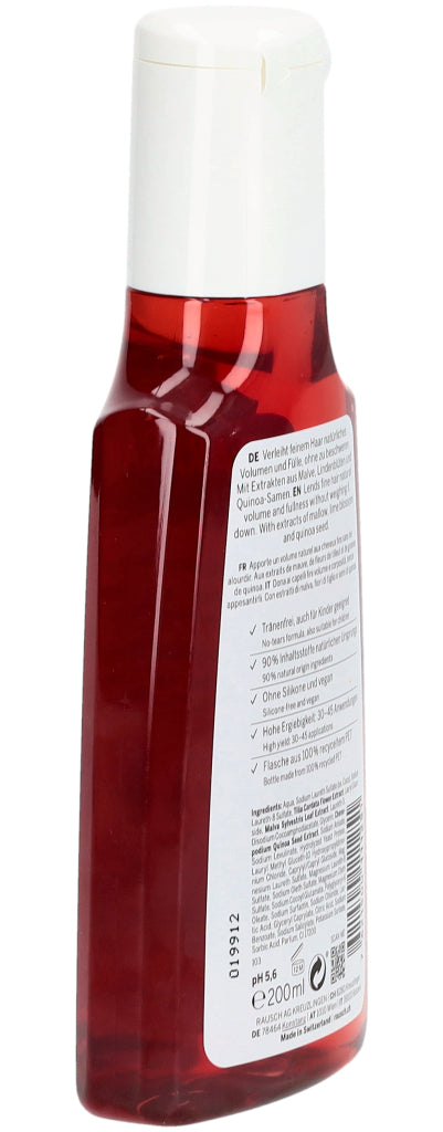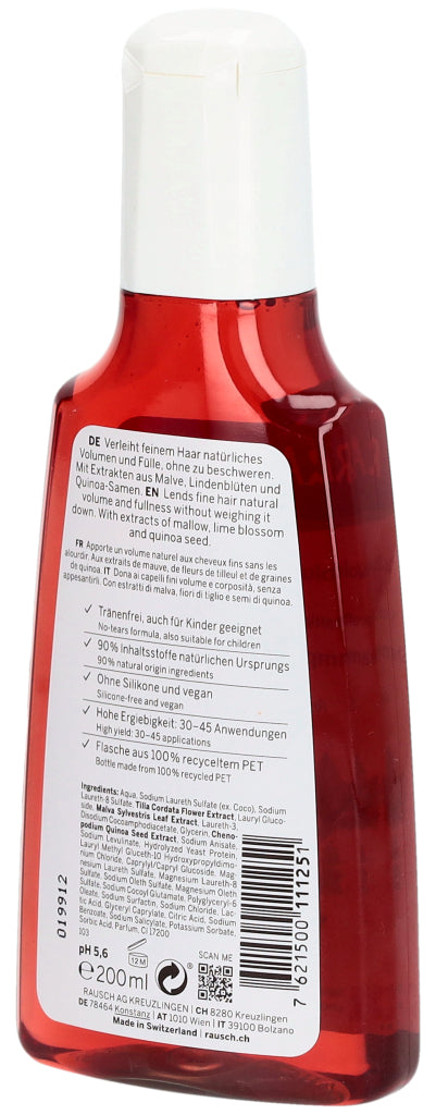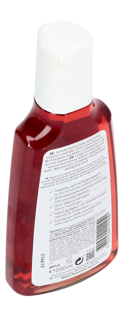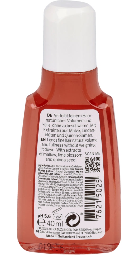 Verleiht feinem Haar natürliches Volumen und Fülle, ohne zu beschweren. Mit Extrakten aus Malve, Lindenblüten und Quinoa-Samen.