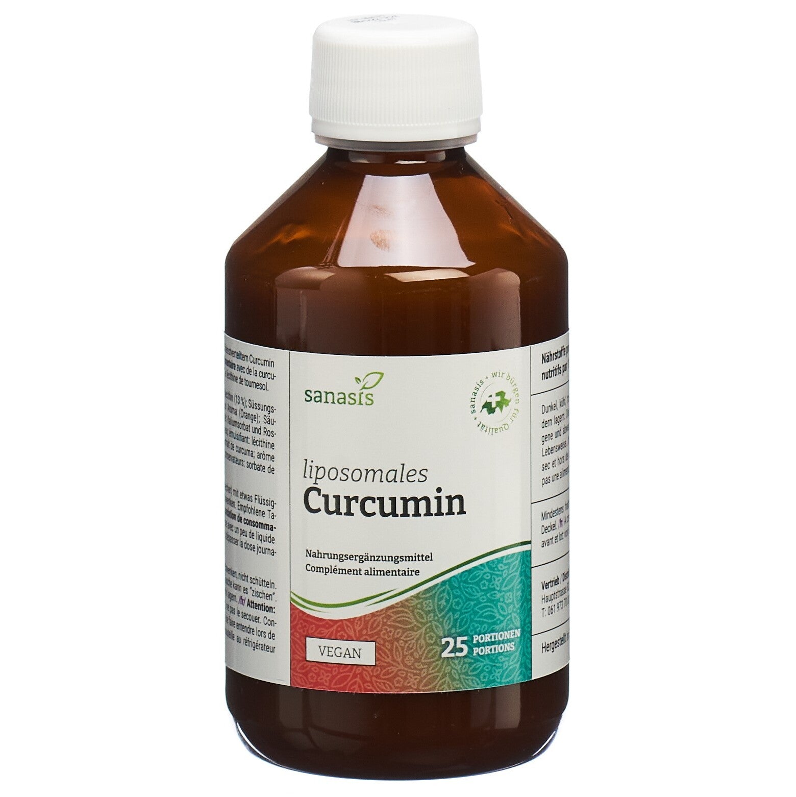 Wasser; Emulgator: Sonnenblumenlecithin (13%); Süssungsmittel: Glycerol; Curcumaextrakt; natürliches Aroma (Orange); Säurungsmittel: Apfelsäure; Konservierungsmittel: Kaliumsorbat und Rosmarinextrakt. Nährstoff pro 10ml: Curcumin 200mg..