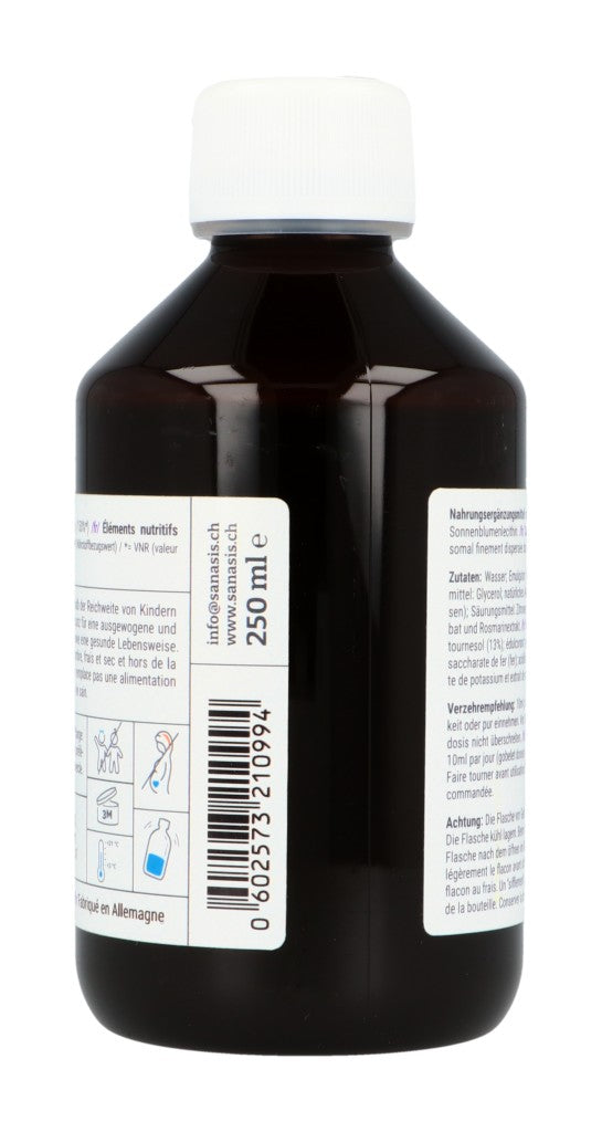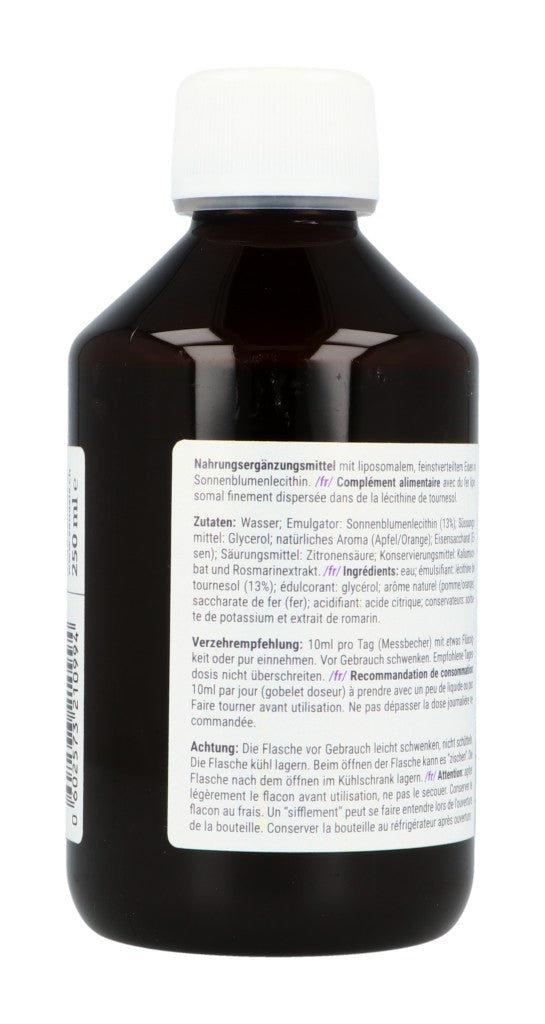 Nahrungsergänzungsmittel mit liposomalem, feinstverteiltem Eisen in Sonnenblumenlecithin.