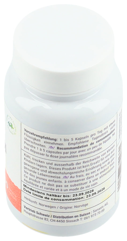 Empfohlene Tagesdosis nicht überschreiten. Kühl, trocken und ausserhalb der Reichweite von kleinen Kindern lagern. Dieses Produkt ist kein Ersatz für eine ausgewogene und abwechslungsreiche Ernährung sowie eine gesunde Lebensweise.