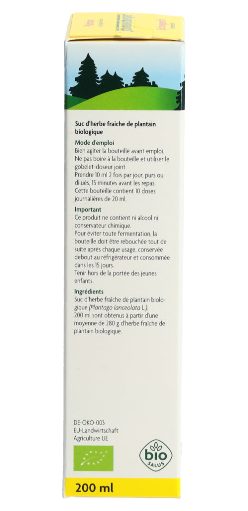 - Saft aus frischem Bio-Spitzwegerichkraut (Plantago lanceolata L.).