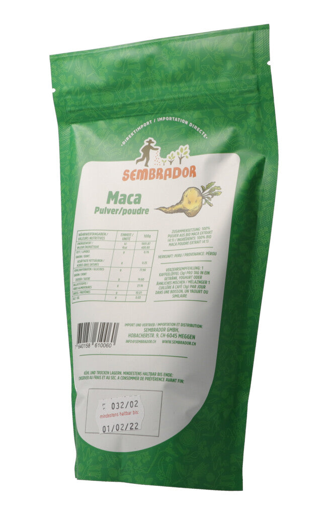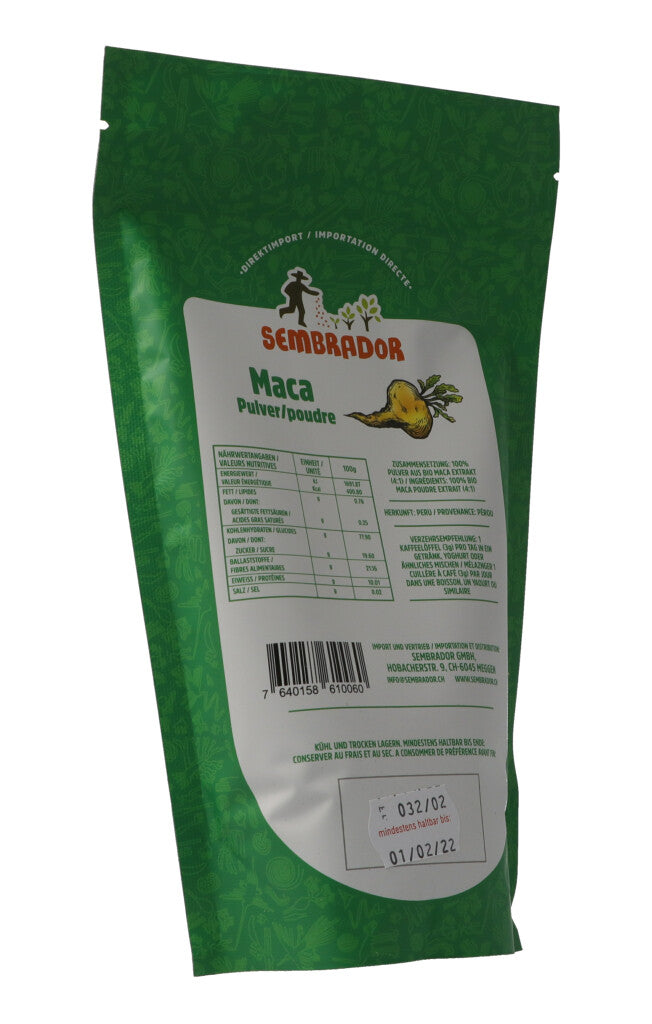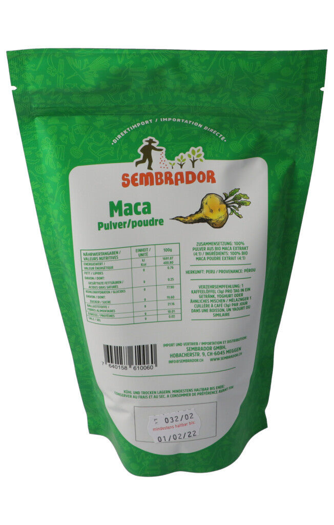 Die Maca-Pflanze stammt aus den Höhenlagen der peruanischen Anden und wird dort seit über 2000 Jahren angebaut. In ihrer rauen Umgebung trotzt die Pflanze Widrigkeiten wie starken Temperaturschwankungen, Wind und aggressiver UV-Strahlung. Ihre Widerstandskraft gibt sie in Form ihrer gesunden Inhaltsstoffe an uns weiter. In Peru wird Maca seit jeher als Stärkungsmittel für den gesamten Organismus verwendet.