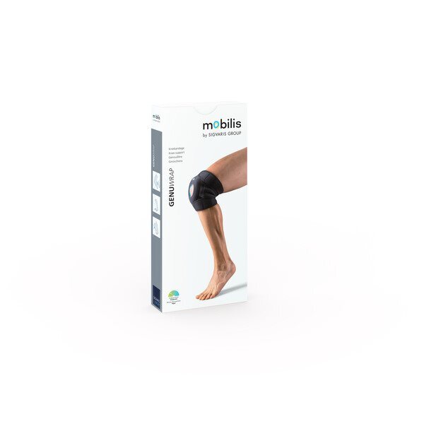 Sigvaris Mobilis GenuWrap bietet moderate Stabilität, ist grössenverstellbar, atmungsaktiv und beidseitig tragbar. Wenn Schmerzen im Bereich der Kniescheibe auftreten, bietet GenuWrap optimalen Support. Die Pelotte entlastet und stabilisiert spürbar Ihre Knie. Dank den Klettverschlüssen lässt sich die Bandage individuell auf Ihr Bein anpassen. Das atmungsaktive Material sorgt für ein angenehmes Tragegefühl.