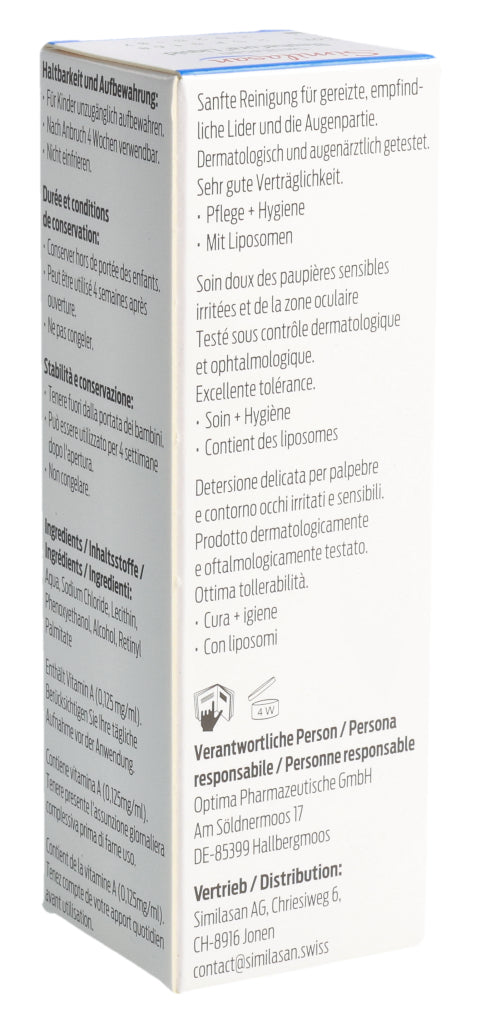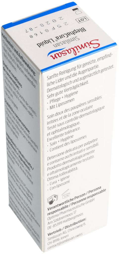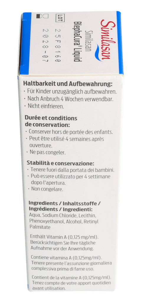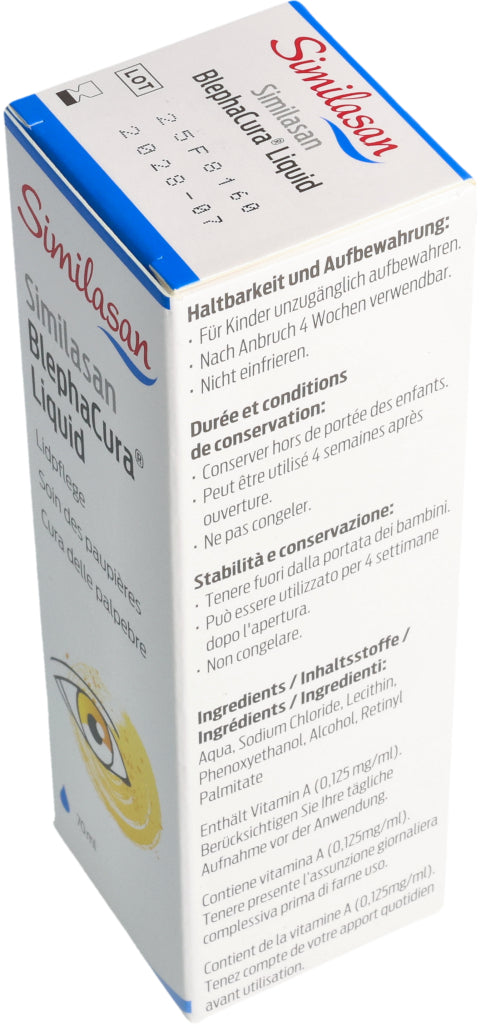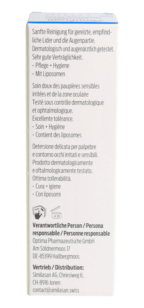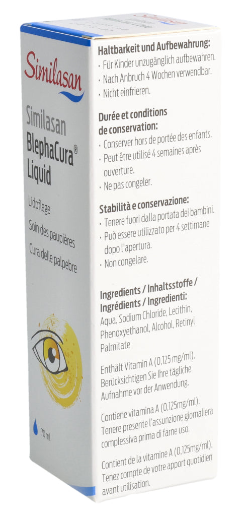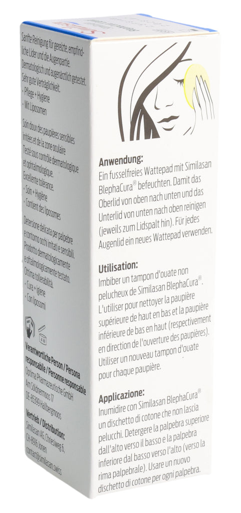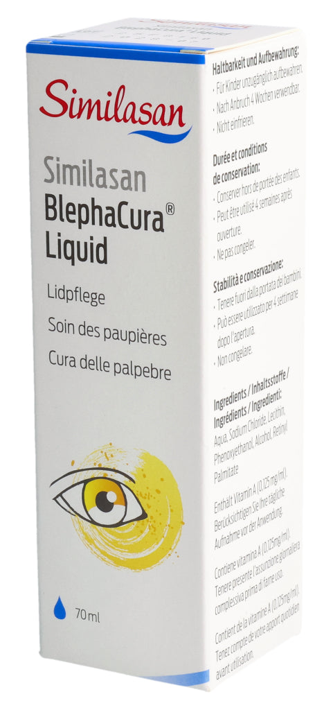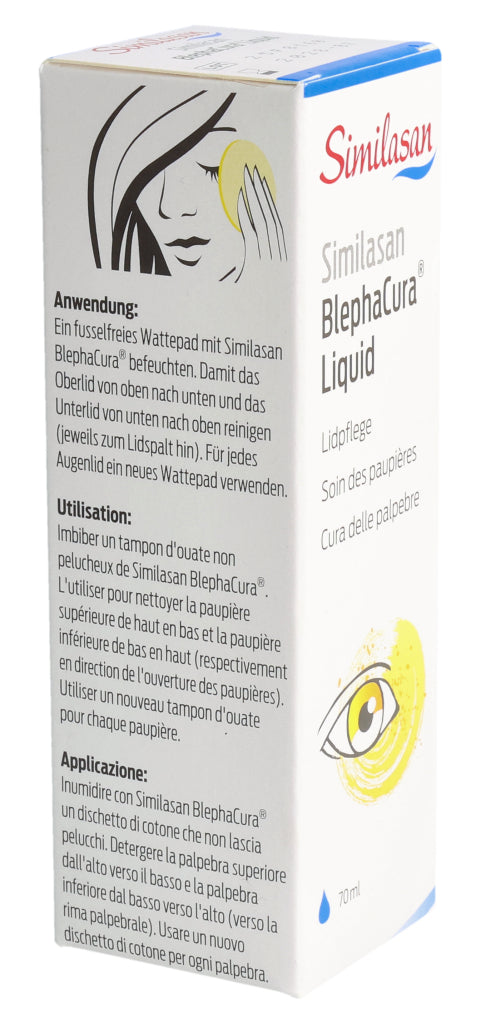 Die Lidrandentzündung (Blepharitis) ist eine Entzündung der Lidränder mit Schuppen- oder Krustenbildung. Meist tritt die Erkrankung an beiden Augen auf. Zur Behandlung reicht oftmals ein regelmässiges Entfernen der Schuppen aus. Manchmal müssen auch Medikamente aufgetragen werden. Verwenden Sie dafür Similasan BlephaCura® Liquid. Die liposomale Suspension reinigt die empfindlichen Lidränder und entfernt überschüssiges Hautfett und Verkrustungen an den Lidrändern. Ausserdem verbessert es die Qualität des Tränenfilms, sodass die Entzündungen besser abklingen können.