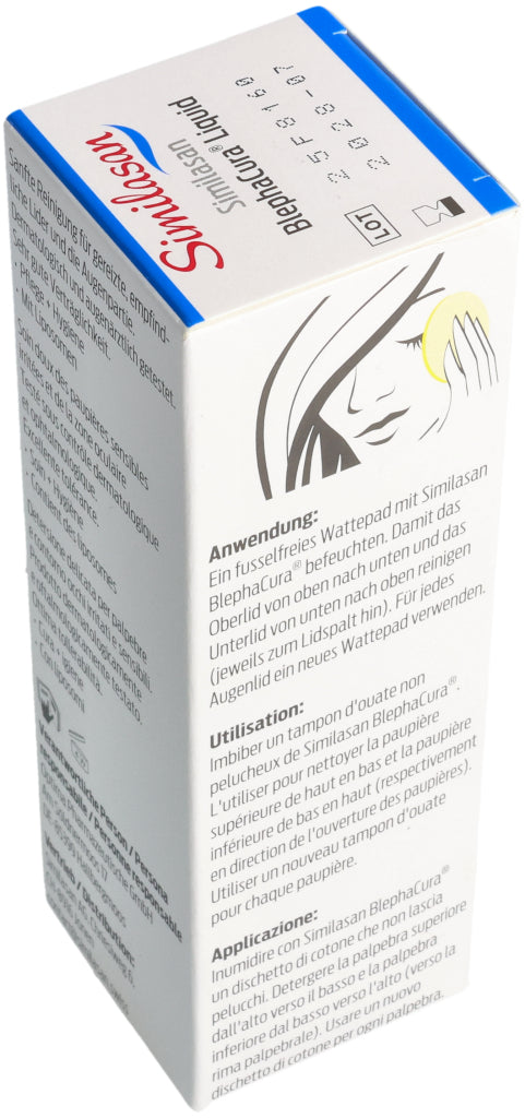 Similasan empfiehlt, BlephaCura® Liquid zweimal täglich (jeweils am Morgen und am Abend) zu verwenden. Nehmen Sie dafür ein (Baumwoll-)Wattepad, das für die Verwendung zur Augenlidpflege geeignet und fusselfrei ist, und tropfen Sie BlephaCura® Liquid darauf. Reinigen Sie damit Ihre Lidränder.