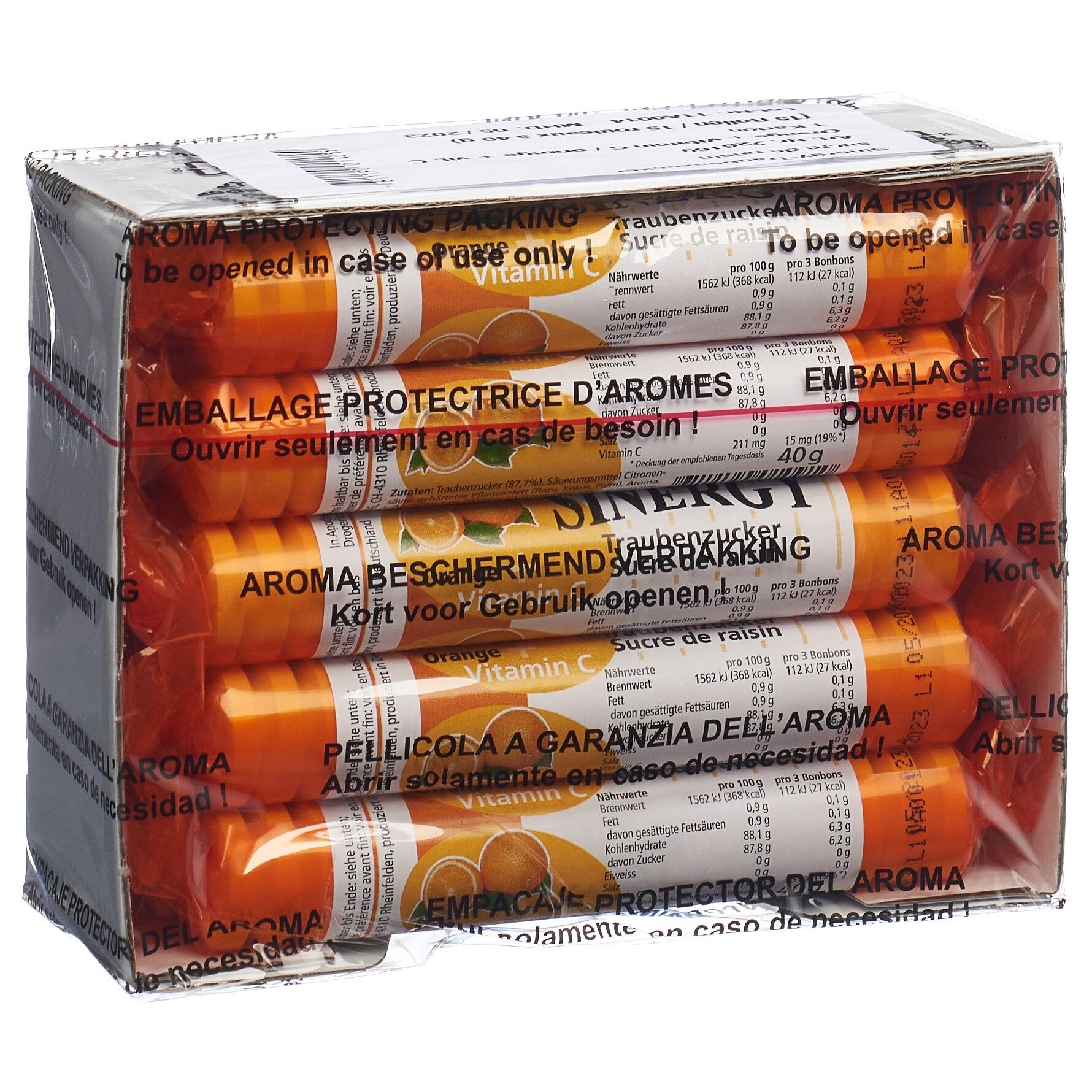SINERGY Traubenzucker Orange + Vitamin C 10 Rollen à 40 g