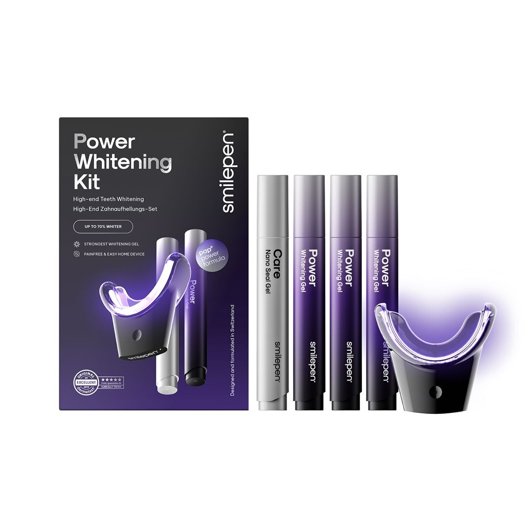 Smilepen Power Whitening Kit & Care ist das stärkste Whitening Kit für bis zu 70% weissere Zähne in wenigen Tagen und mit sichtbaren Resultaten bereits ab der 1. Anwendung.