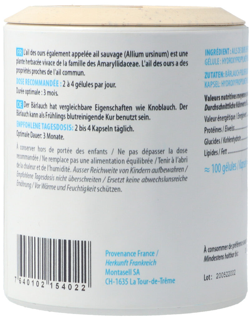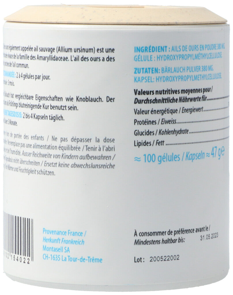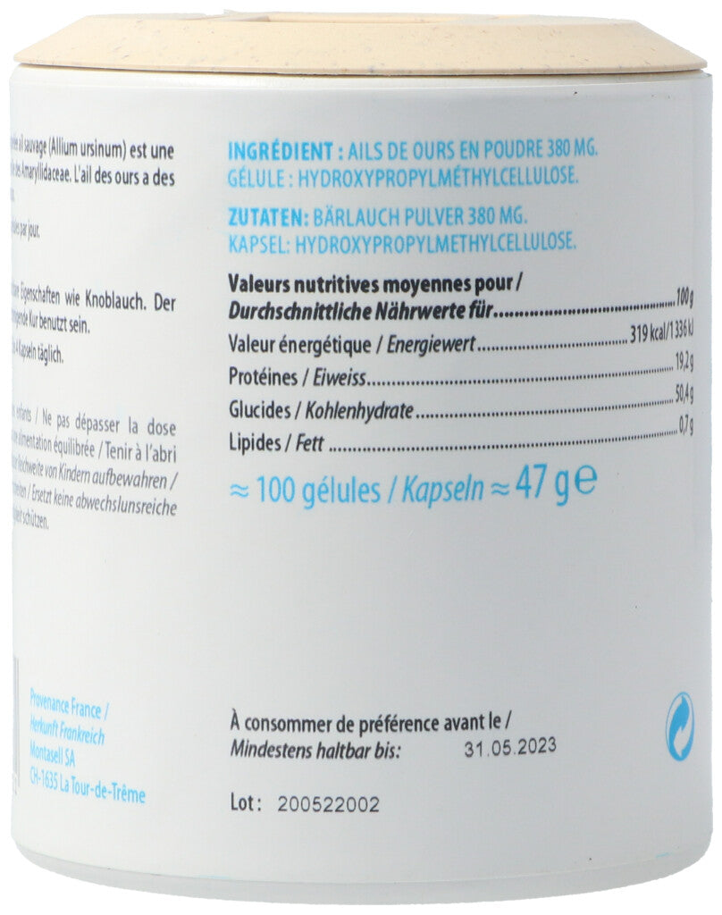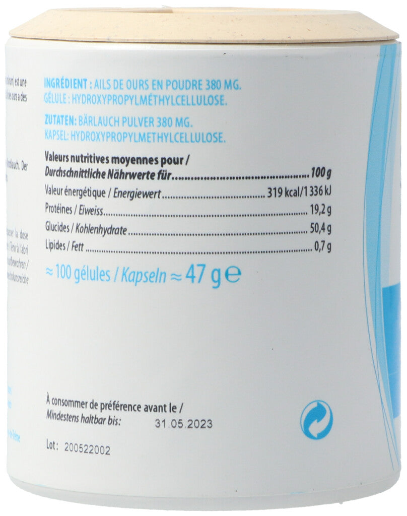 Bärlauchpulver 380mg. Kapsel: Hydroxypropylmethylcellulose..
