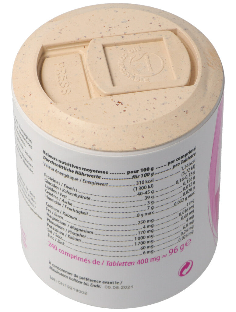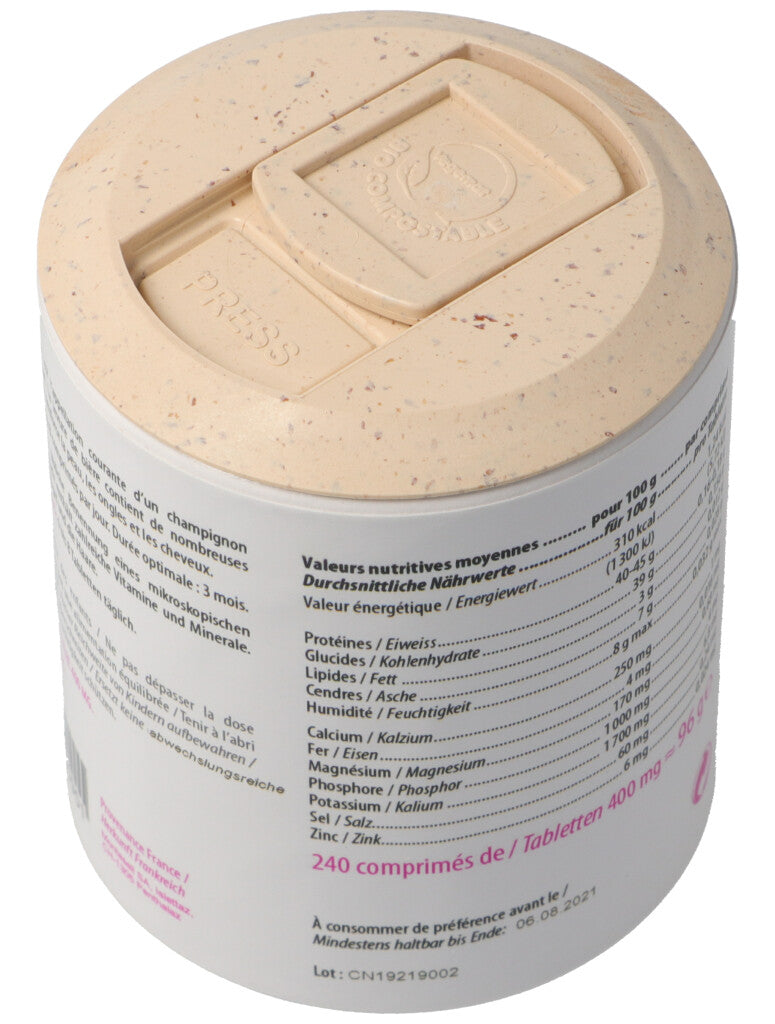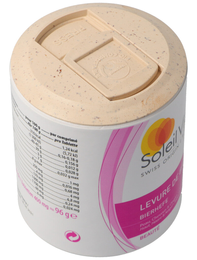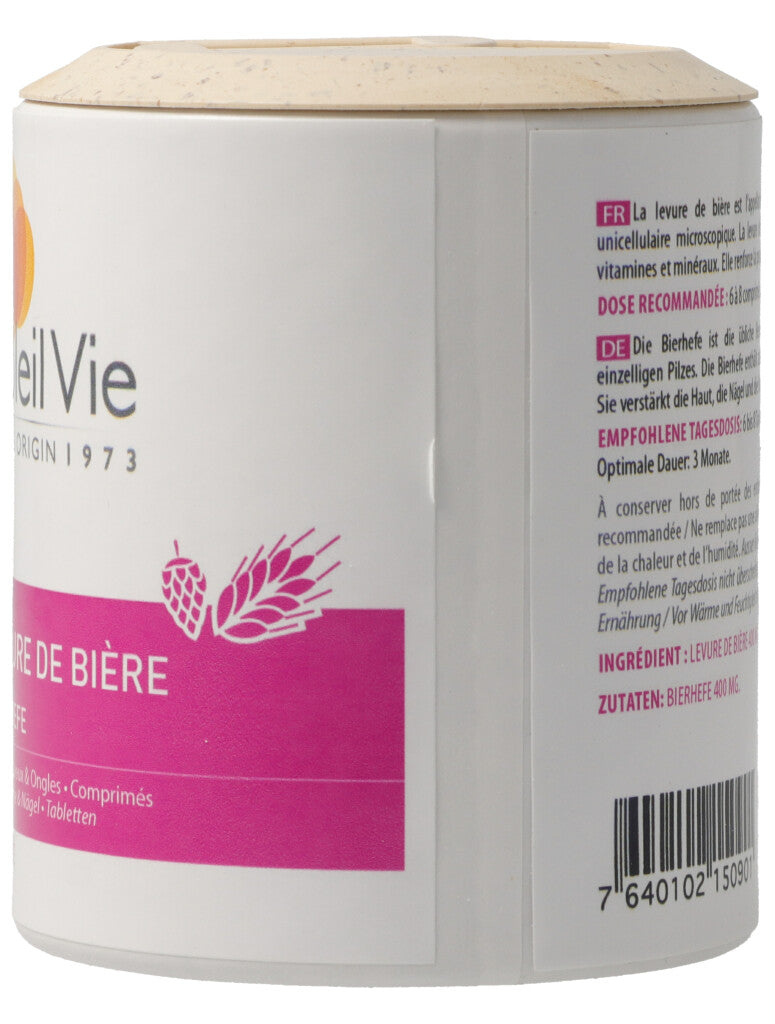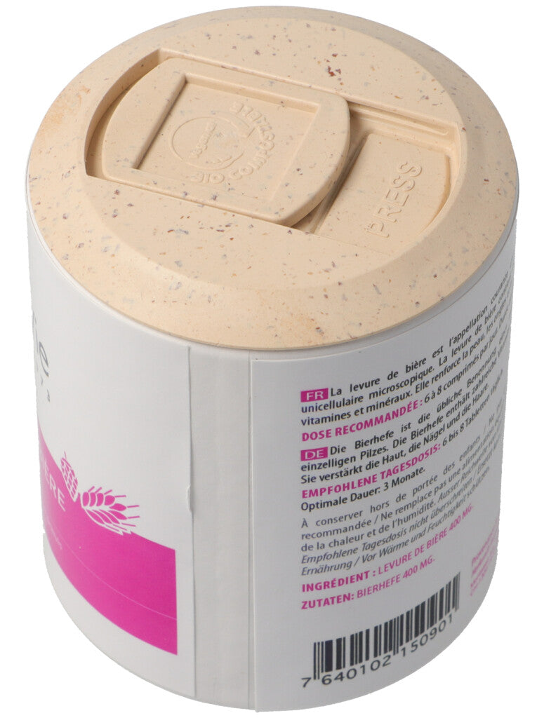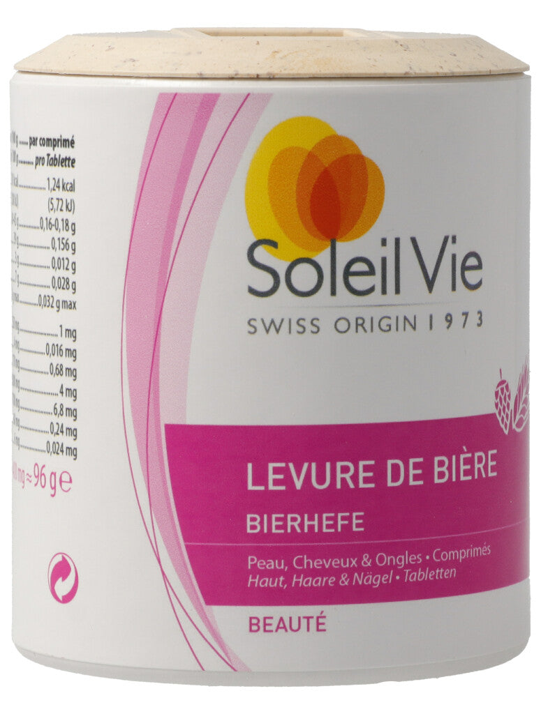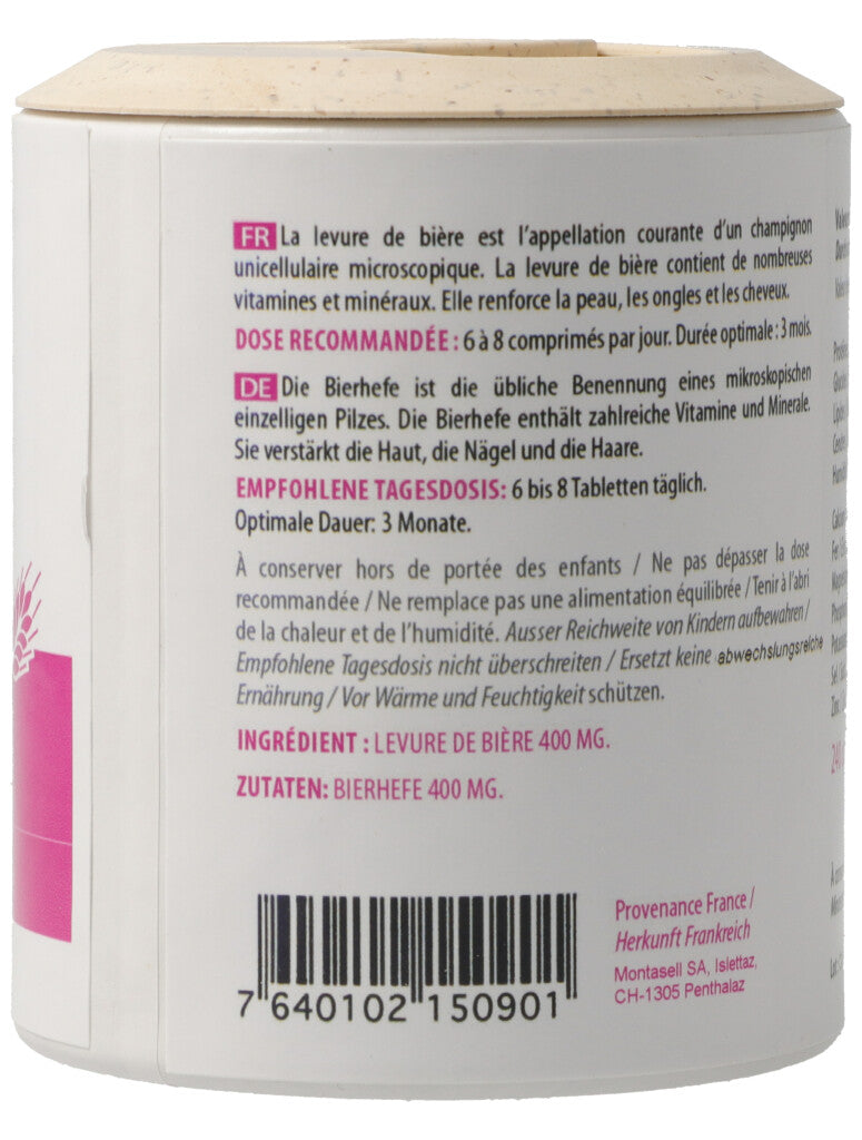 Die Bierhefe ist die übliche Benennung eines mikroskopischen einzelligen Pilzes. Die Bierhefeenthält zahlreiche Vitamine und Minerale. Sie verstärkt die Haut, die Nägel und die Haare. Empfohlene Tagesdosis: 6 bis 8 Tabletten täglich. Optimale Dauer: 3 Monate.