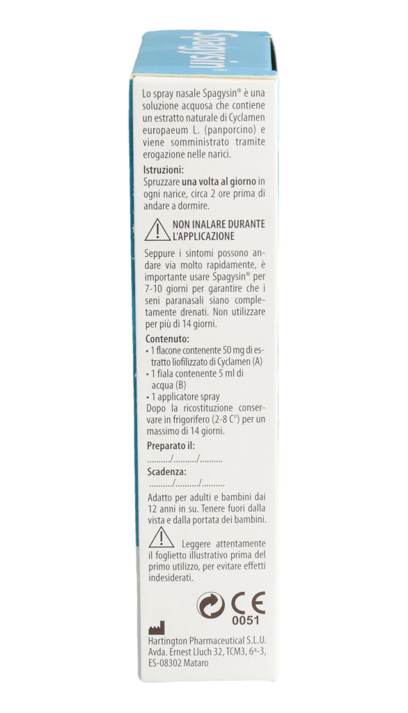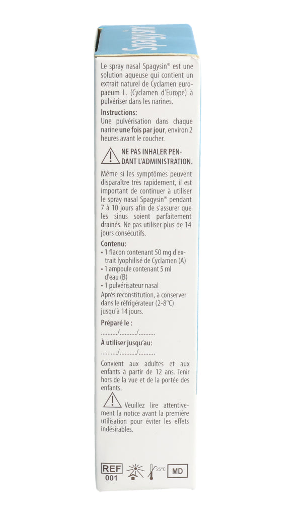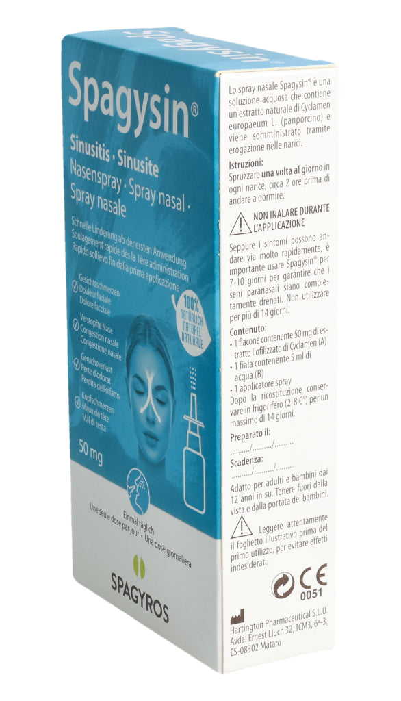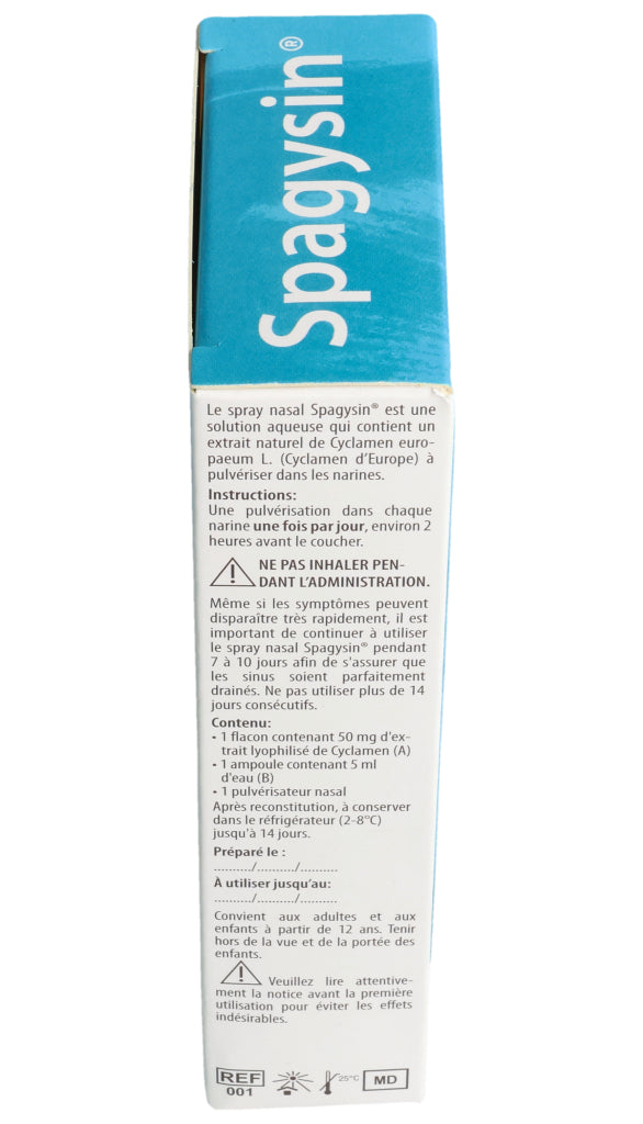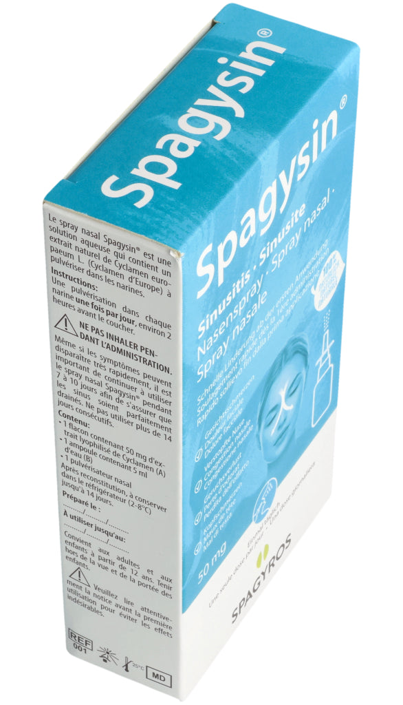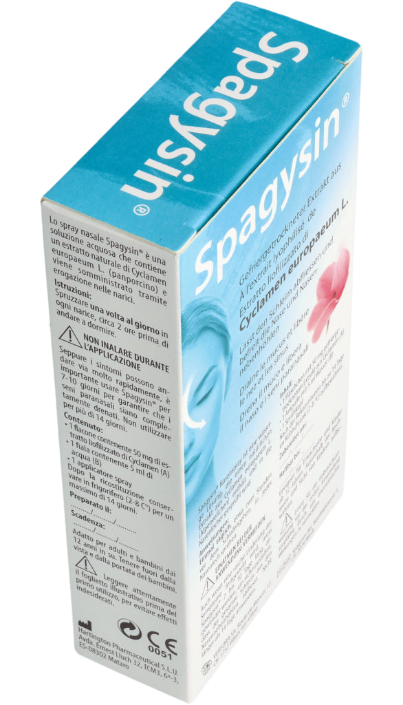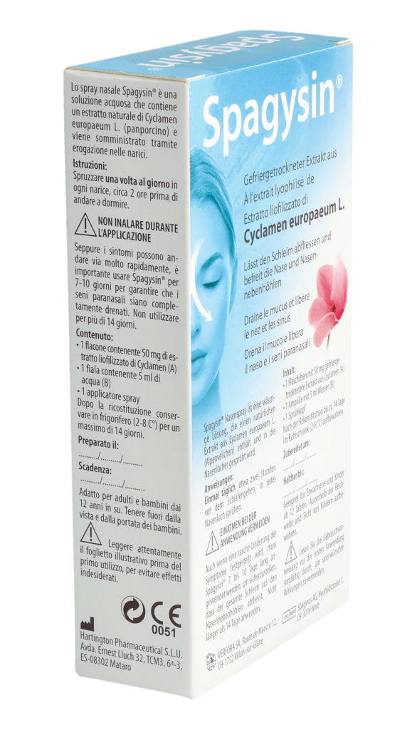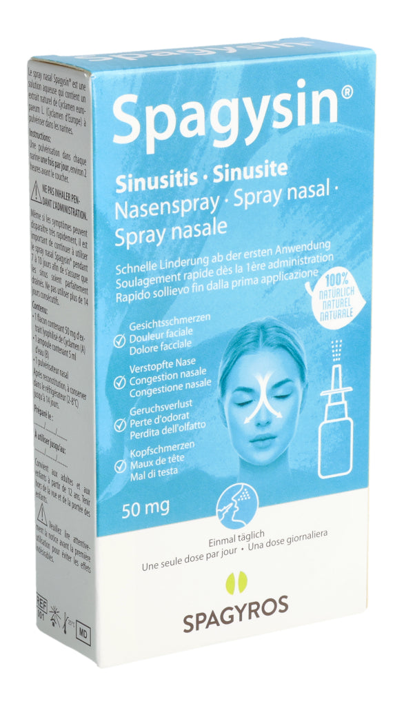 Spagysin® Nasenspray ist eine wässrige Lösung, die einen natürlichen Extrakt aus Cyclamen europaeum L. (Alpenveilchen) enthält und in die Nasenlöcher gesprüht wird.