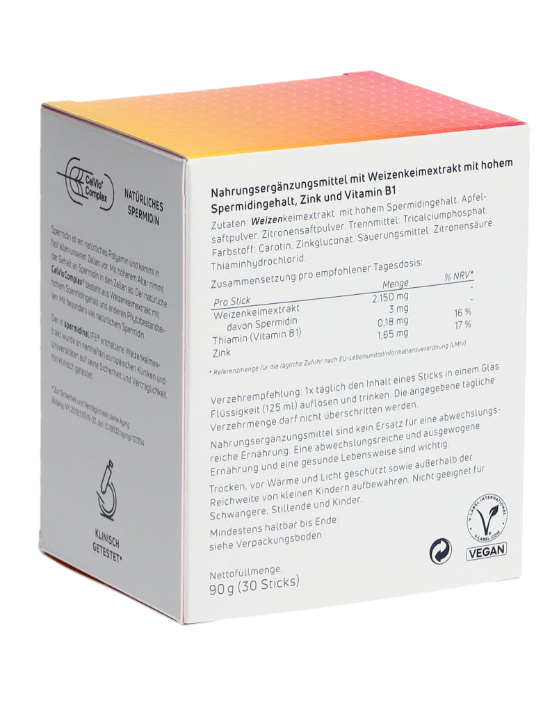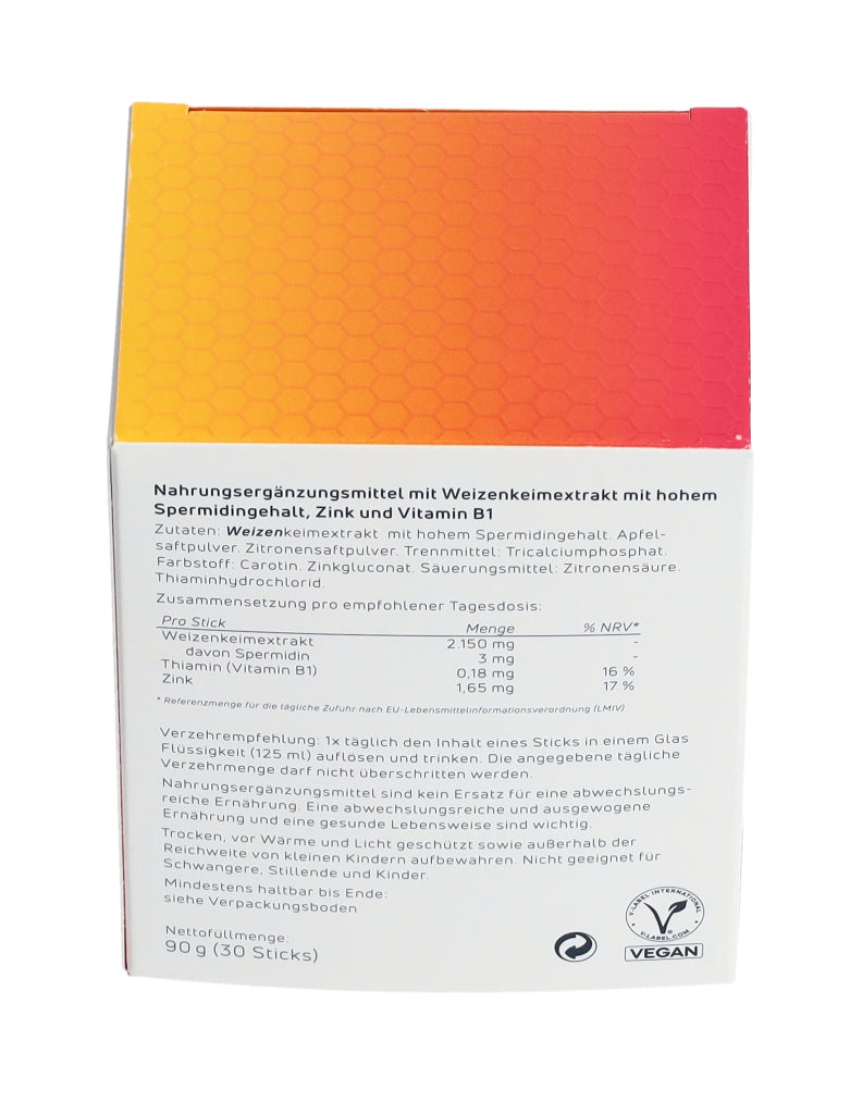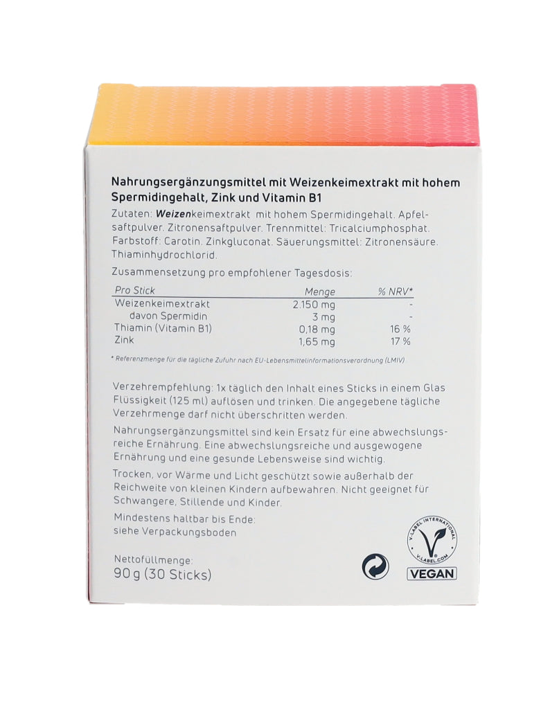 - 30 Sachets mit 3 mg natürlichem Spermidin pro Tagesdosis