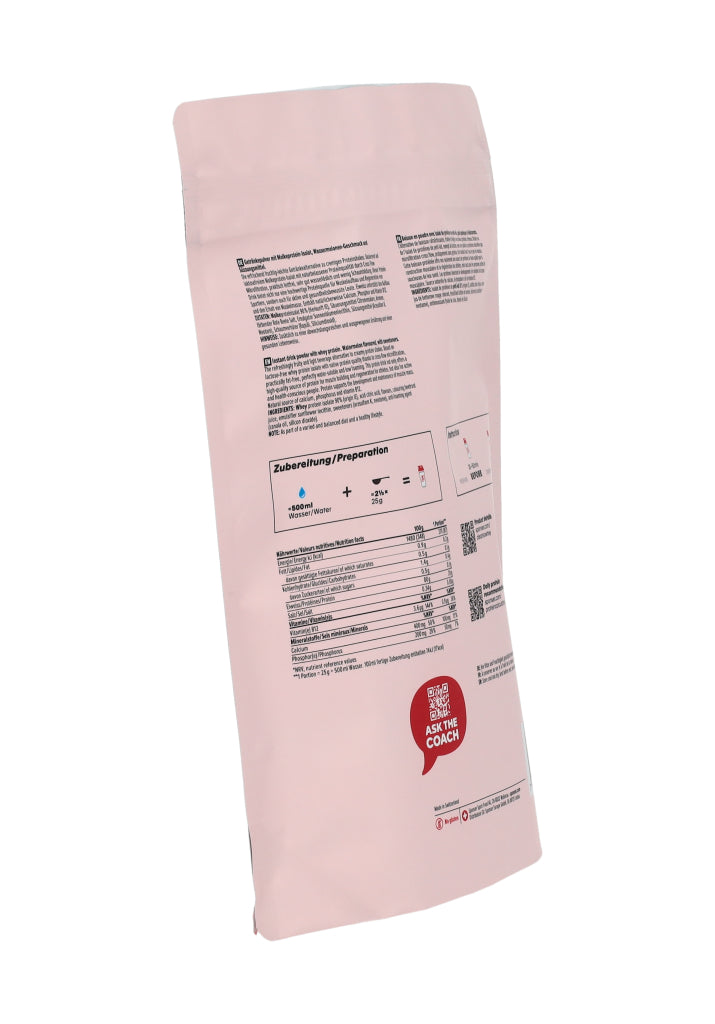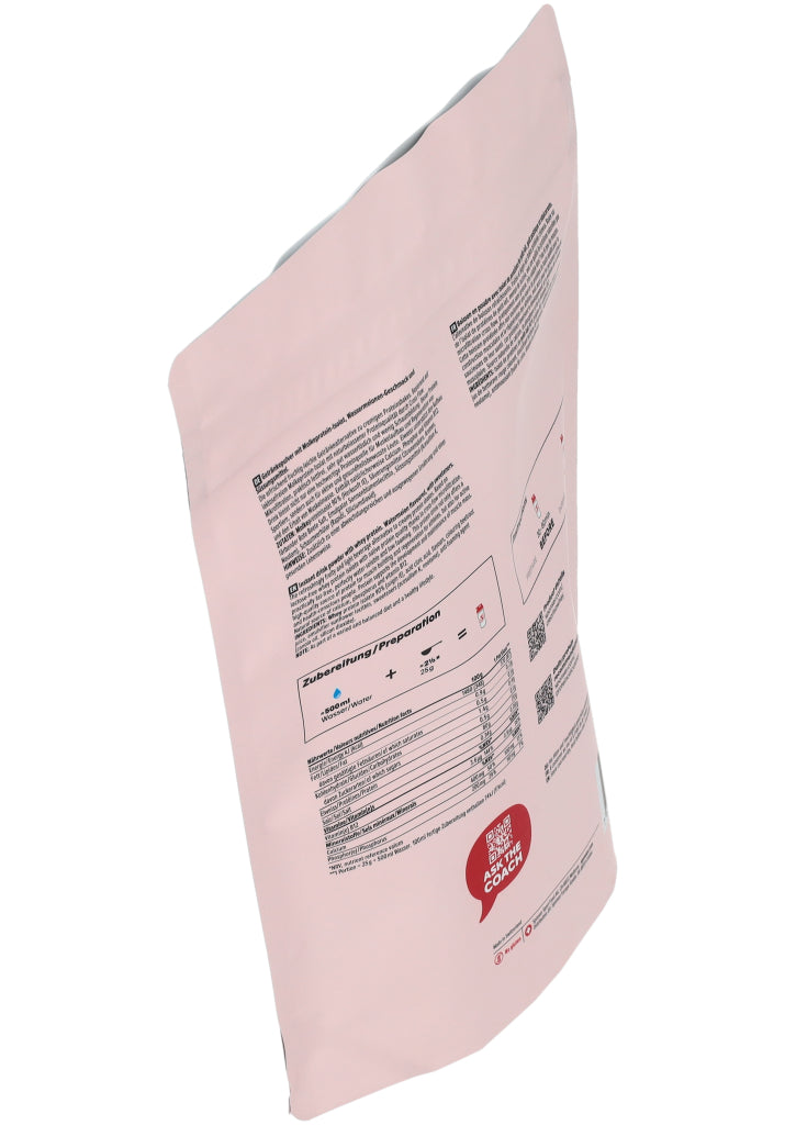 MOLKEproteinisolat 90% (IE), Säuerungsmittel Citronensäure, Aromen, färbender Rote Beete Saft, Emulgator Sonnenblumenlecithin, Süssungsmittel (Acesulfam K, Neotam), Schaumverhüter (Rapsöl, Siliciumdioxid). CH.
