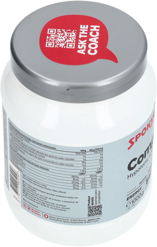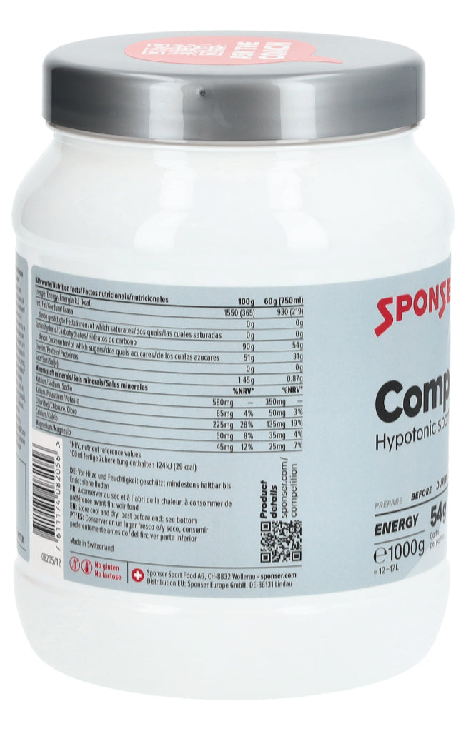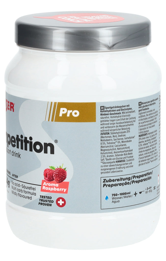 COMPETITION® ist ein säurefreier Sportdrink für höchste Energieansprüche, bestehend aus einem breiten Mix an Kohlehydraten mit unterschiedlichem glykämischem Index und Elektrolyten, ohne den Zusatz von freier Fructose. Durch die spezielle Zusammensetzung und die neutrale oder sehr milde Aromatisierung ist Competition® auch in hohen Konzentrationen und Intensitäten optimal geeignet. Angereichert mit den Elektrolyten Natrium, Calcium, Magnesium, Kalium und Chlorid. Calcium spielt eine wichtige Rolle im Energiestoffwechsel und dient zusammen mit Magnesium und Kalium der Muskelfunktion. Geeignet zur Unterstützung der körperlichen Leistungsfähigkeit bei Ausdauerbelastungen sowie zur Rehydratation der Flüssigkeitsverluste nach körperlicher Aktivität.