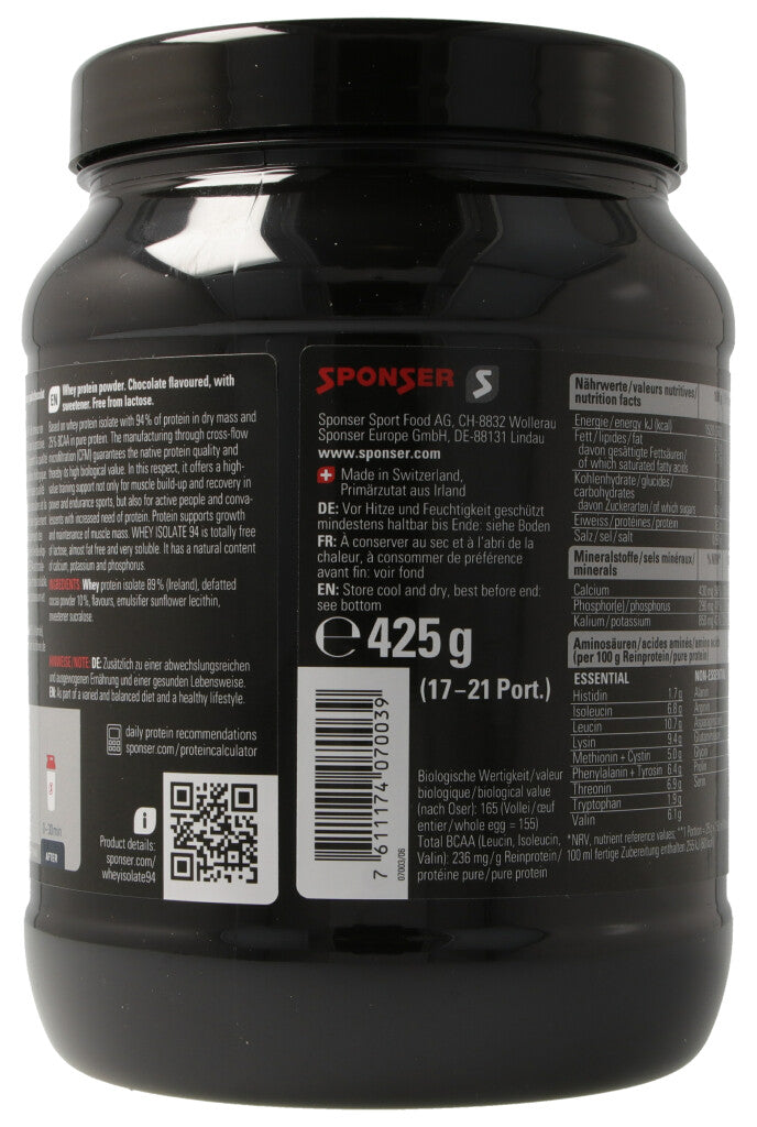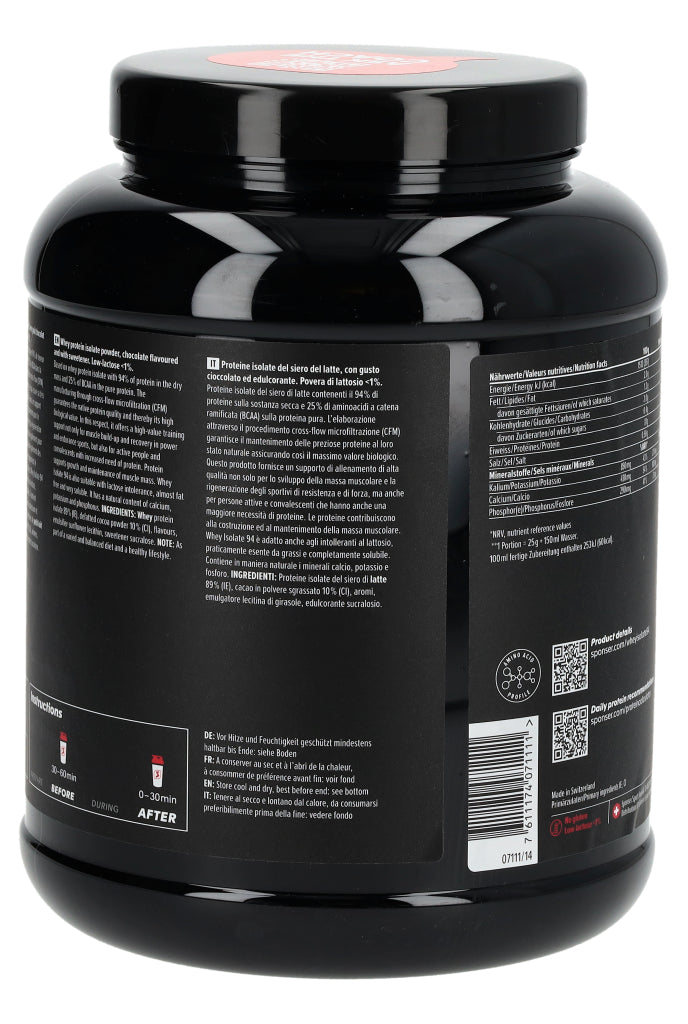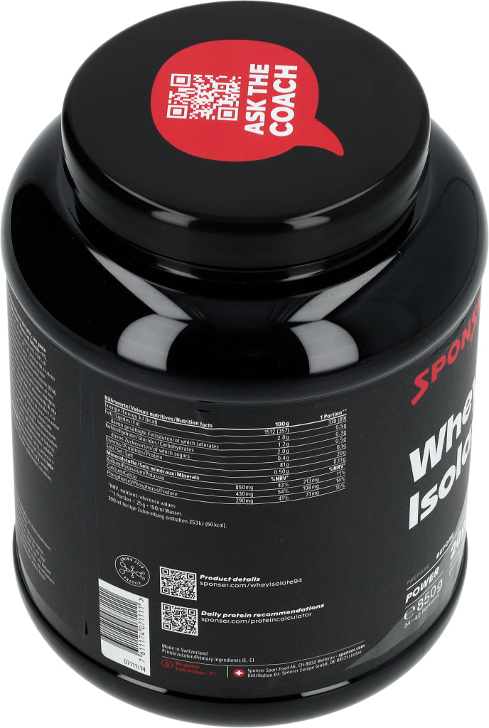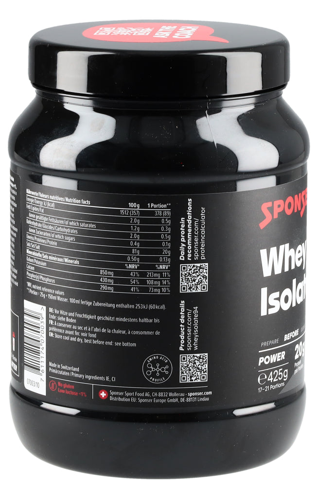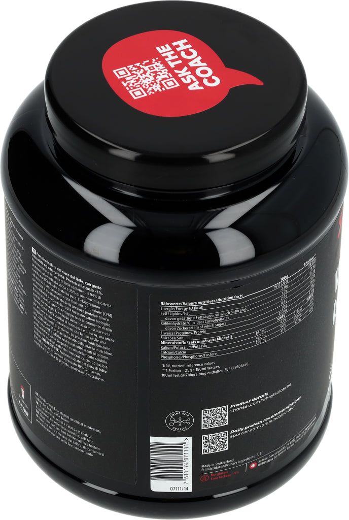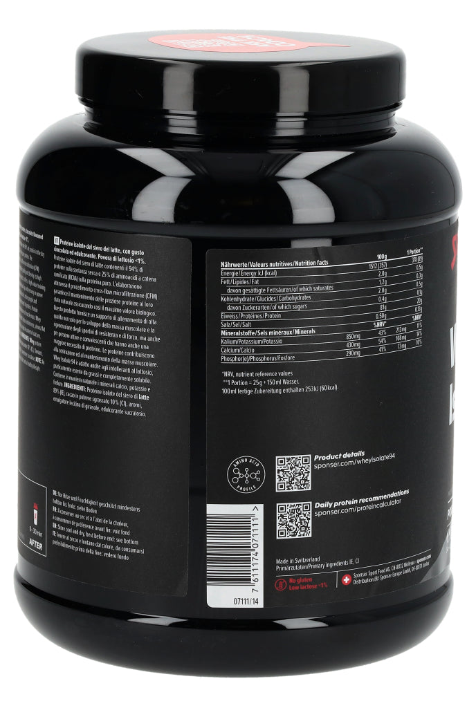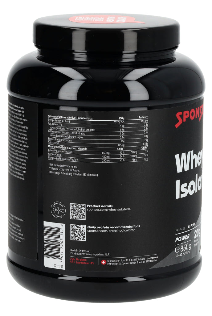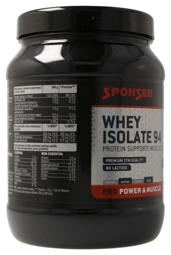 Eiweiss unterstützt das Wachstum und den Erhalt der Muskelmasse. SPONSER® WHEY ISOLATE 94 ist ein Molkenproteinisolat mit einem extrem hohen Proteingehalt von 94% in der Trockensubstanz.