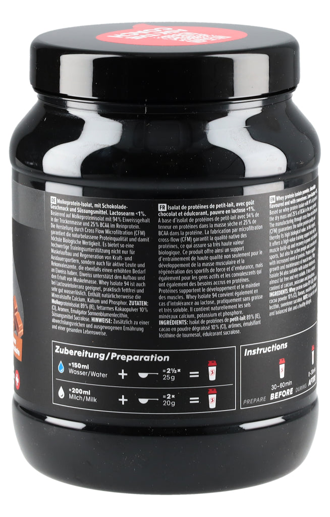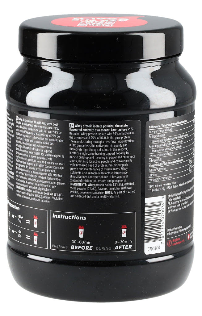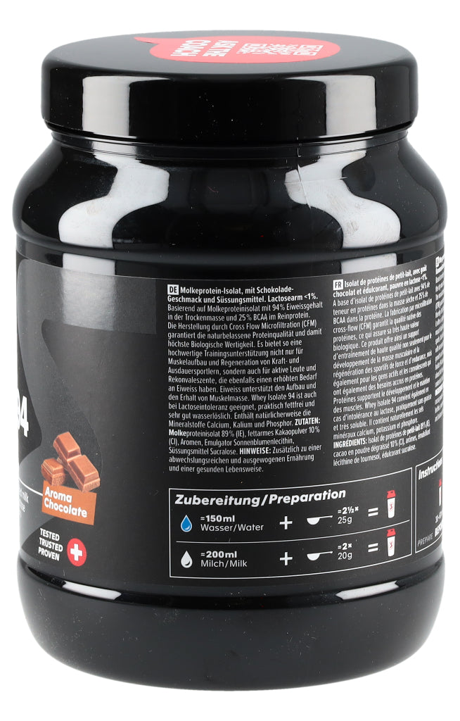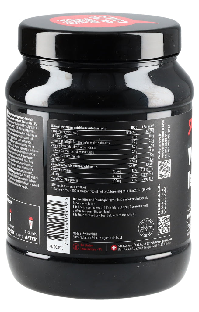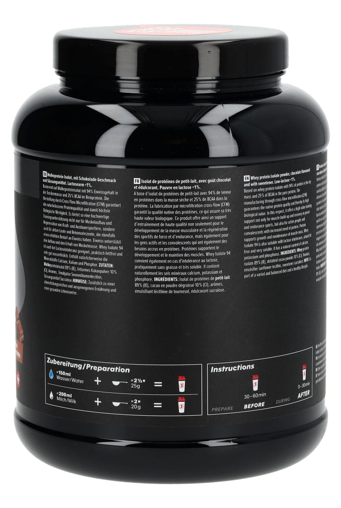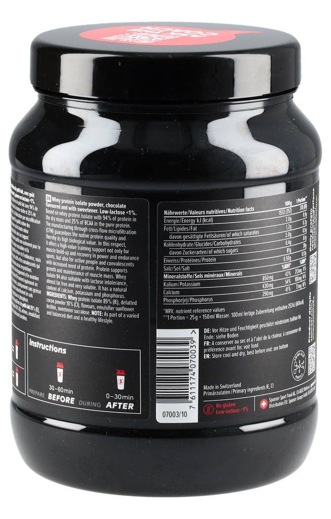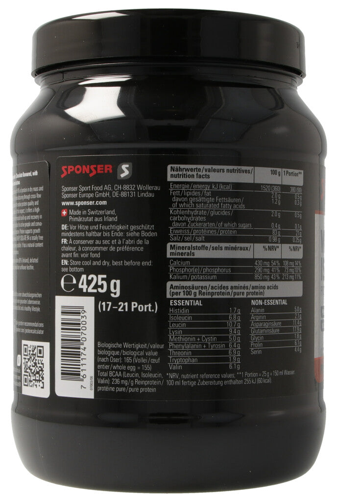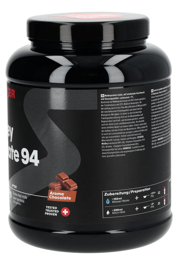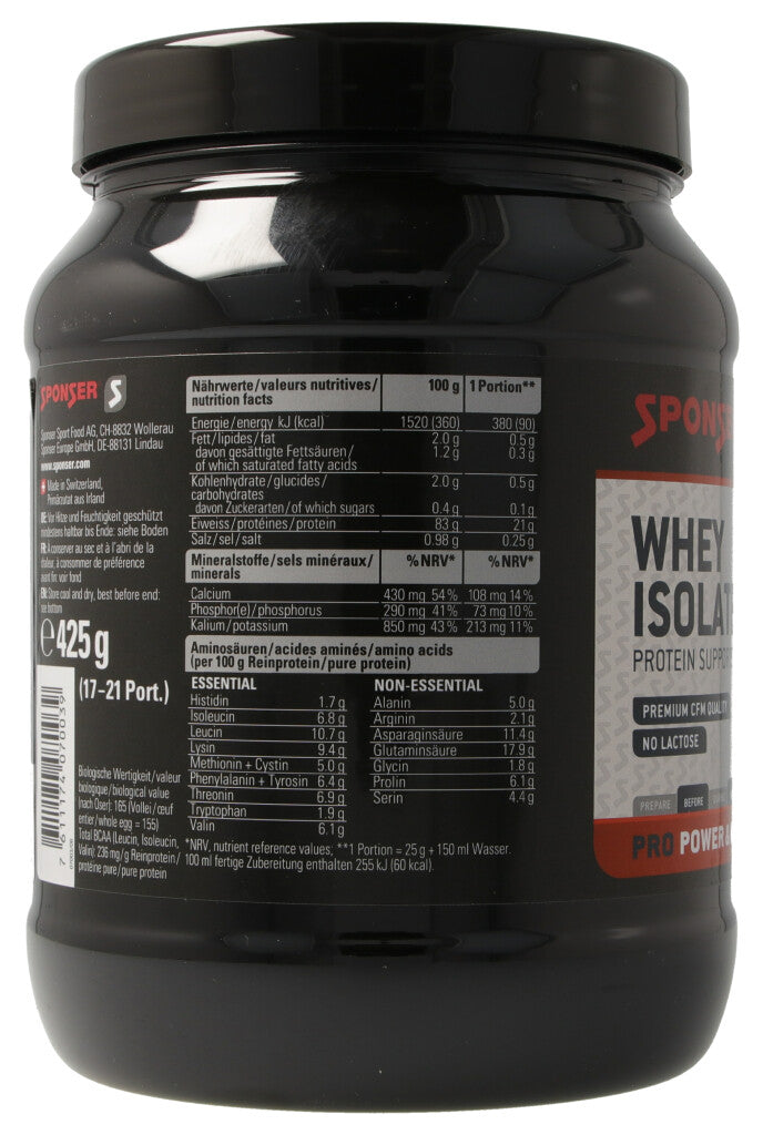 Eiweiss unterstützt das Wachstum und den Erhalt der Muskelmasse. SPONSER® WHEY ISOLATE 94 ist ein Molkenproteinisolat mit einem extrem hohen Proteingehalt von 94% in der Trockensubstanz. Die Herstellung durch Cross Flow Microfiltration (Micro- und anschliessende Ultrafiltration, kein Ionenaustausch) garantiert eine höchstmögliche Erhaltung und Konzentrierung der wertvollen Proteinfraktionen in ihrer natürlichen Tertiär- und Quartärstruktur, welche sonst beim Ionenaustausch verloren geht. Gleichzeitig ermöglicht diese Technologie den tiefstmöglichen Fettgehalt und Lactosefreiheit bei höchster Biologischer Wertigkeit (170 nach Oser).