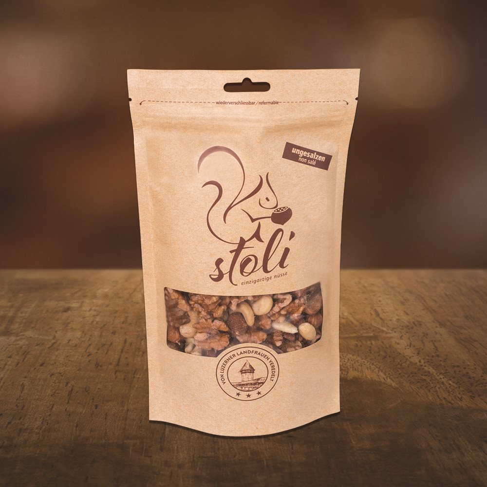 Stoli Nuss-Mix deluxe ungesalzen ist eine Nussmischung, die von den Schweizer Nussexperten Stoli in Luzern erlesen wurde.