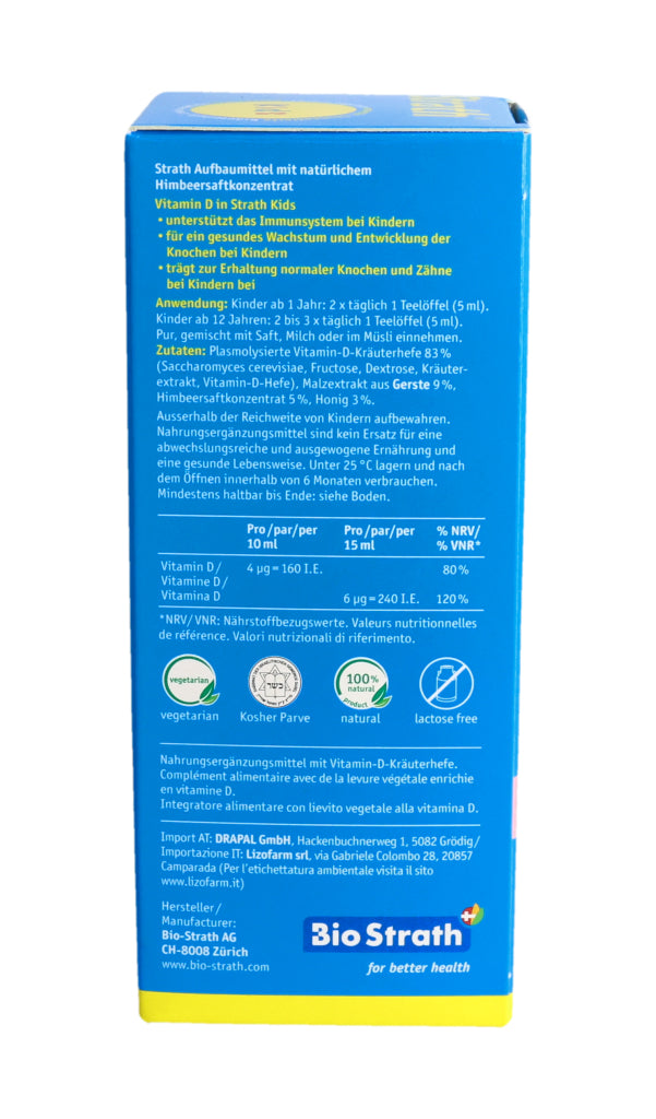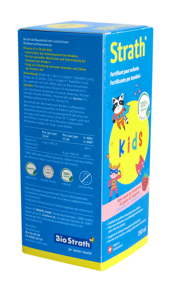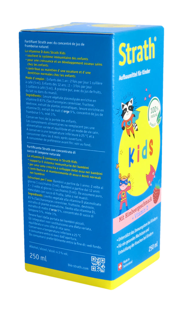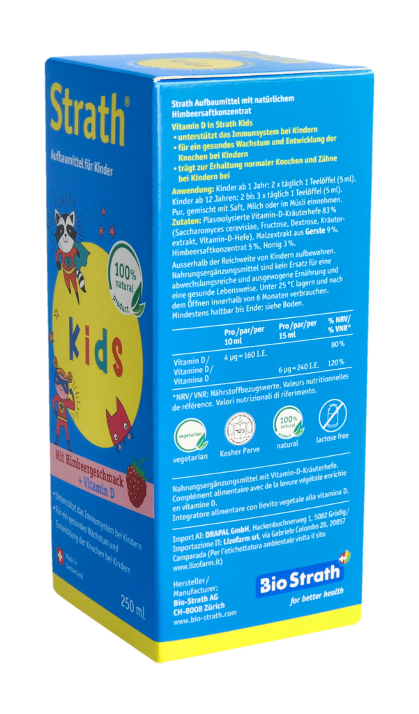 Strath Kids Himbeere basiert auf fermentierter Kräuterhefe mit natürlichem Vitamin D.