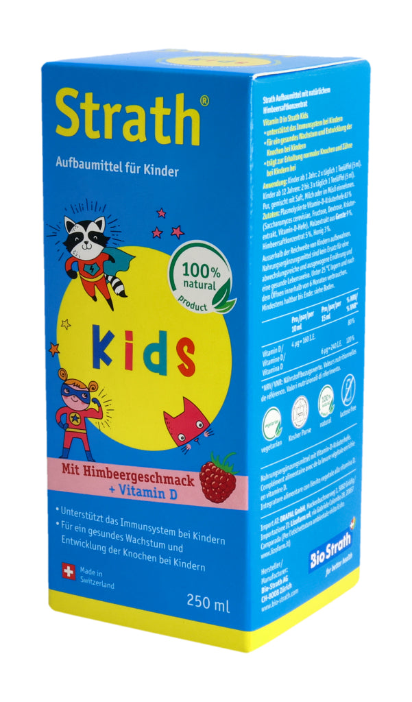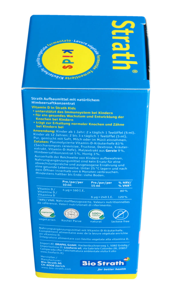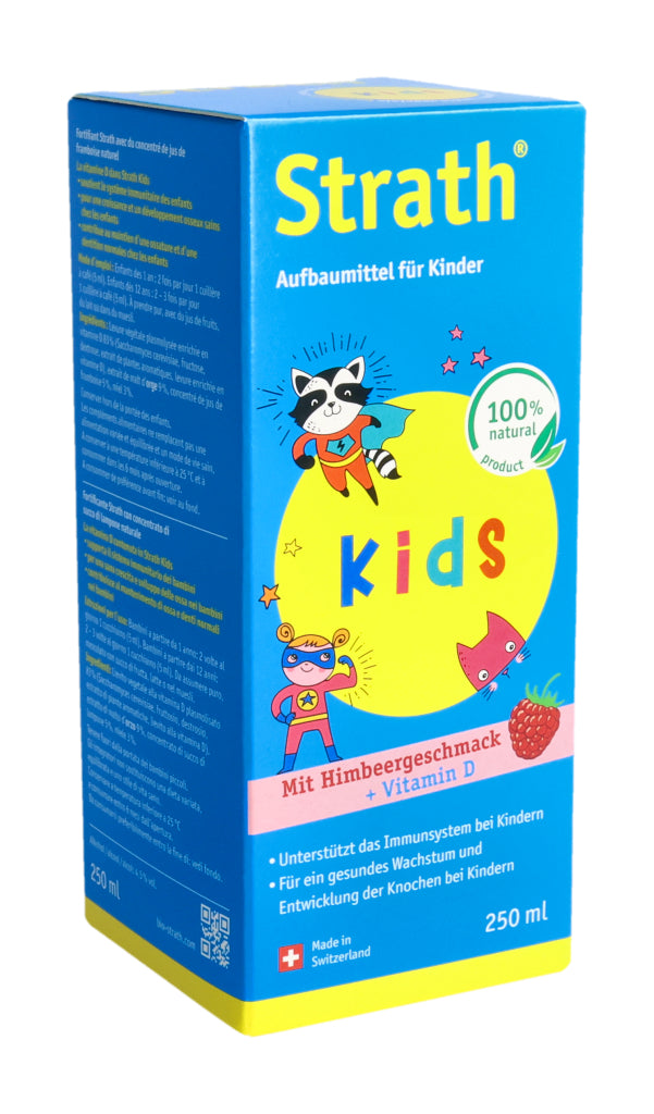 Strath Kids Himbeere basiert auf fermentierter Kräuterhefe mit natürlichem Vitamin D. Das hochwertige Aufbaumittel eignet sich für Kinder ab 1 Jahr, Schüler und Jugendliche. Durch das natürliche Himbeersaftkonzentrat wird der Geschmack noch fruchtiger.