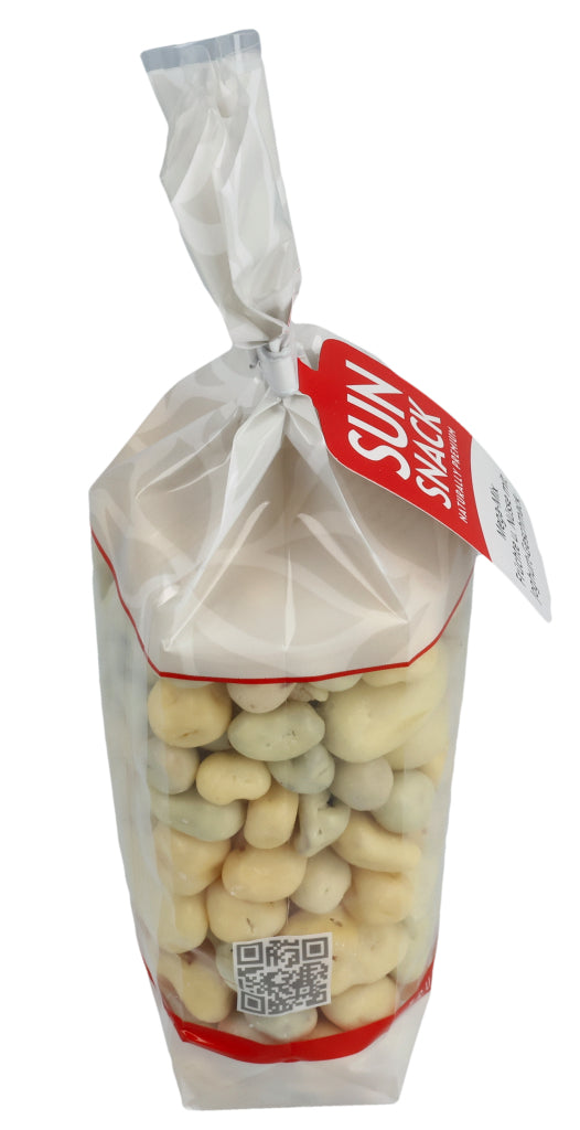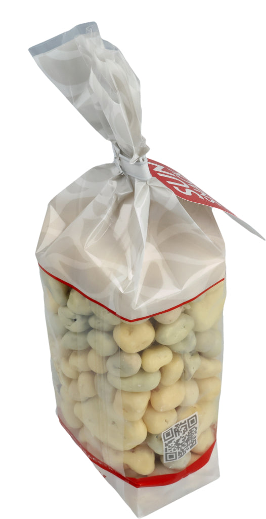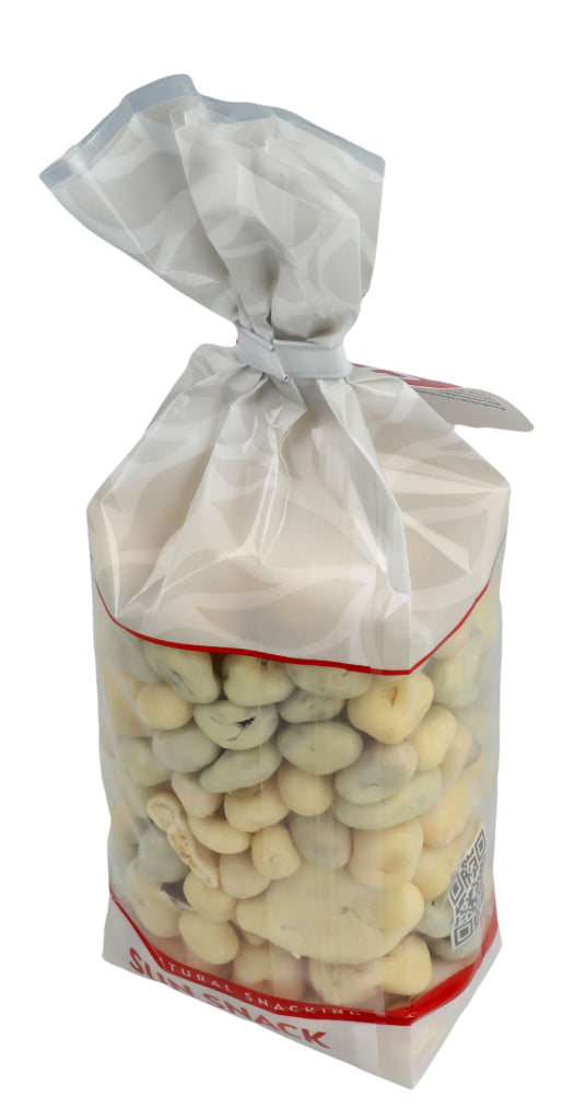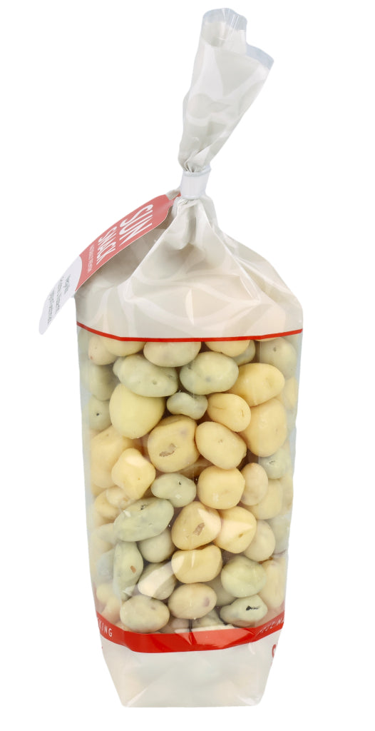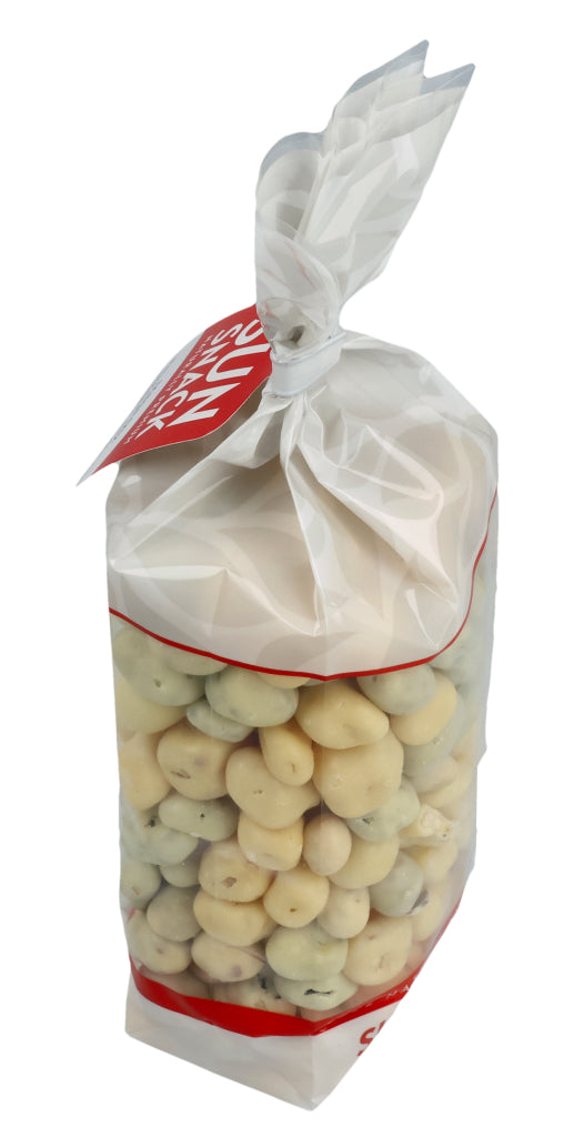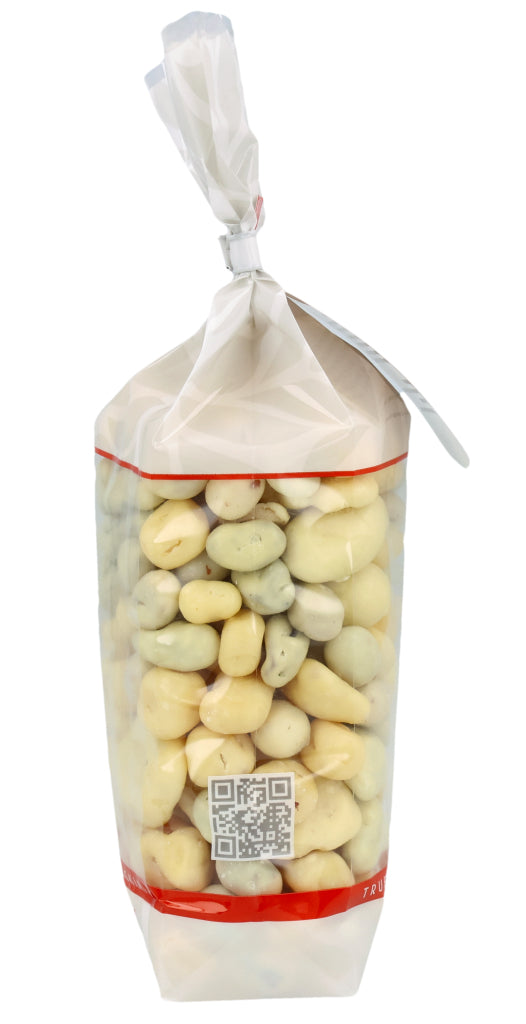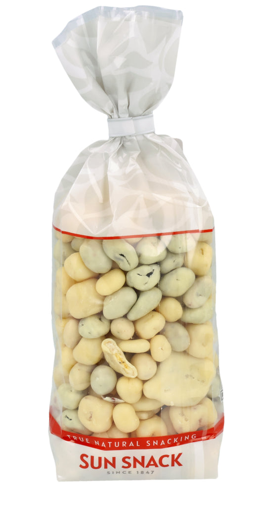 Zucker (38.3%), Kakaobutter (14.3%), ERDNÜSSE (9%), VOLLMILCHPULVER (8.3%), Rosinen (8%), Papaya (4.1%), Ananas (3.4%), Bananen (3%), MANDELN (3%), LAKTOSE (2.9%), HASELNÜSSE (2.5%), MAGERMILCHPULVER (1.1%), Kokosnussöl (1%) Überzugsmittel: Gummi Arabicum E414, Säuerungsmittel: Zitronensäure E330, Emulgator: SOJALECITHIN E322, Konservierungsmittel: SCHWEFELDIOXID E220, Joghurt Aroma, Bananen Aroma, natürliches Vanille Aroma.