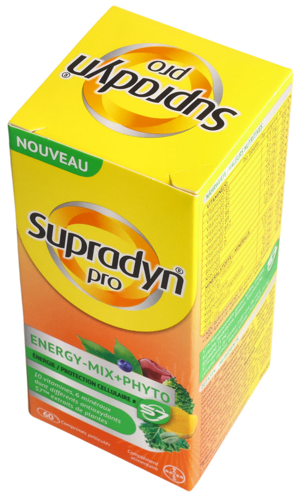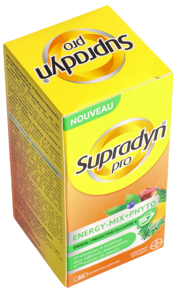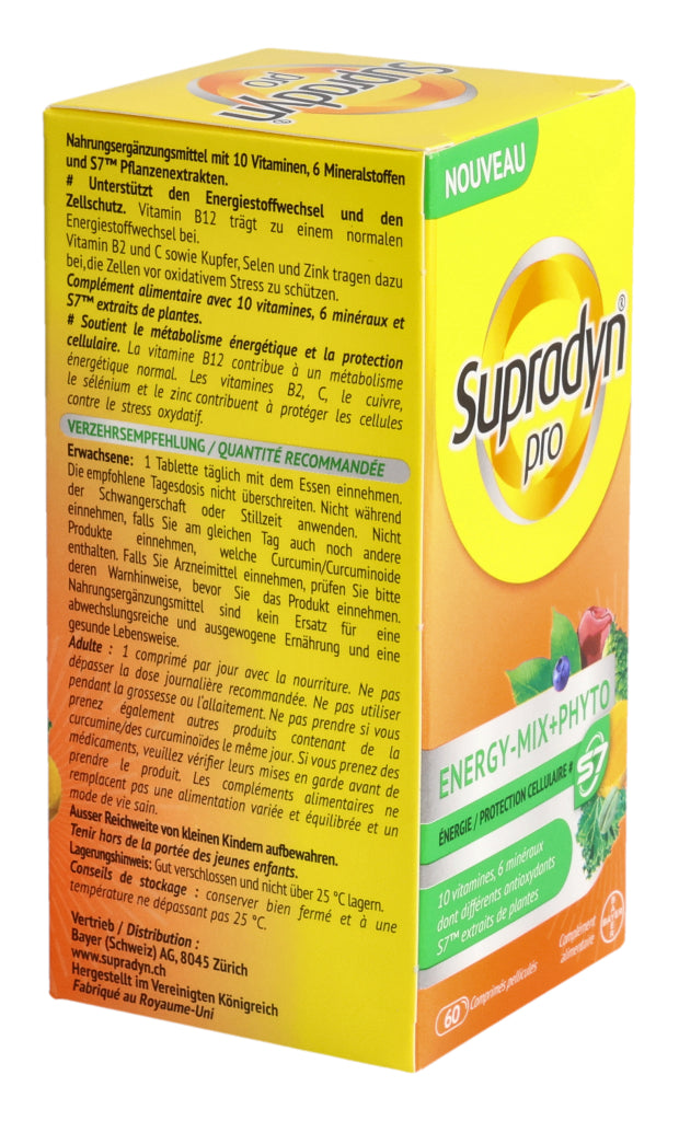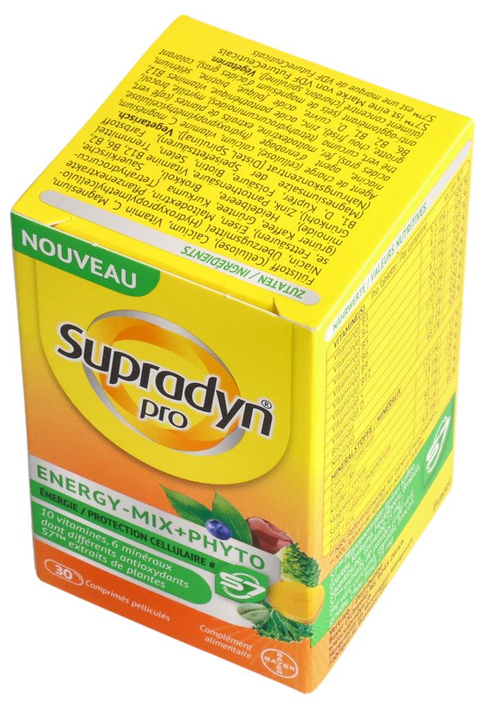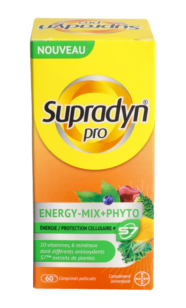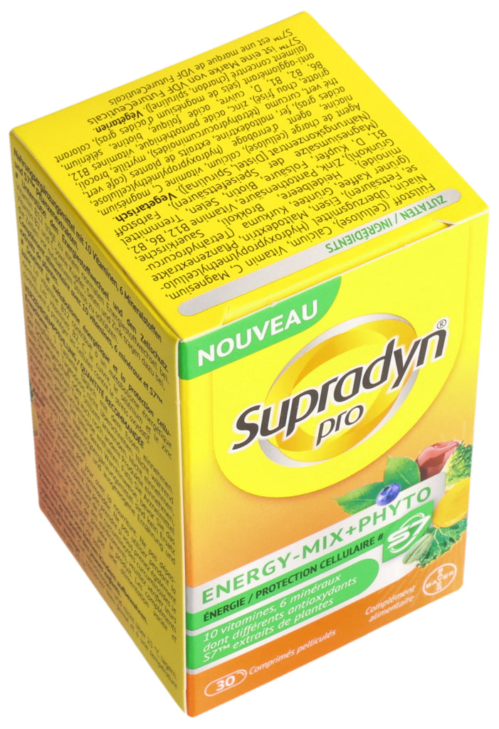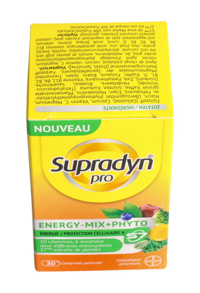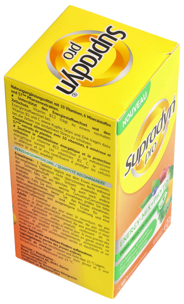Supradyn® pro Energy-Mix+Phyto ist ein einzigartiges Multivitamin- und Mineralstoffpräparat mit 10 Vitaminen, 6 Mineralstoffen und speziellen S7TM Pflanzenextrakten. Unterstützt die Energieproduktion und den Zellschutz*. Bei anhaltender Ermüdung*. Für Personen, die ein Multivitamin-Mineralstoffpräparat mit dem Zusatz von Pflanzenextrakten suchen. Anwendungsmöglichkeiten sind körperliche Ermüdung, ein hektischer Alltag, intensive körperliche Belastung.