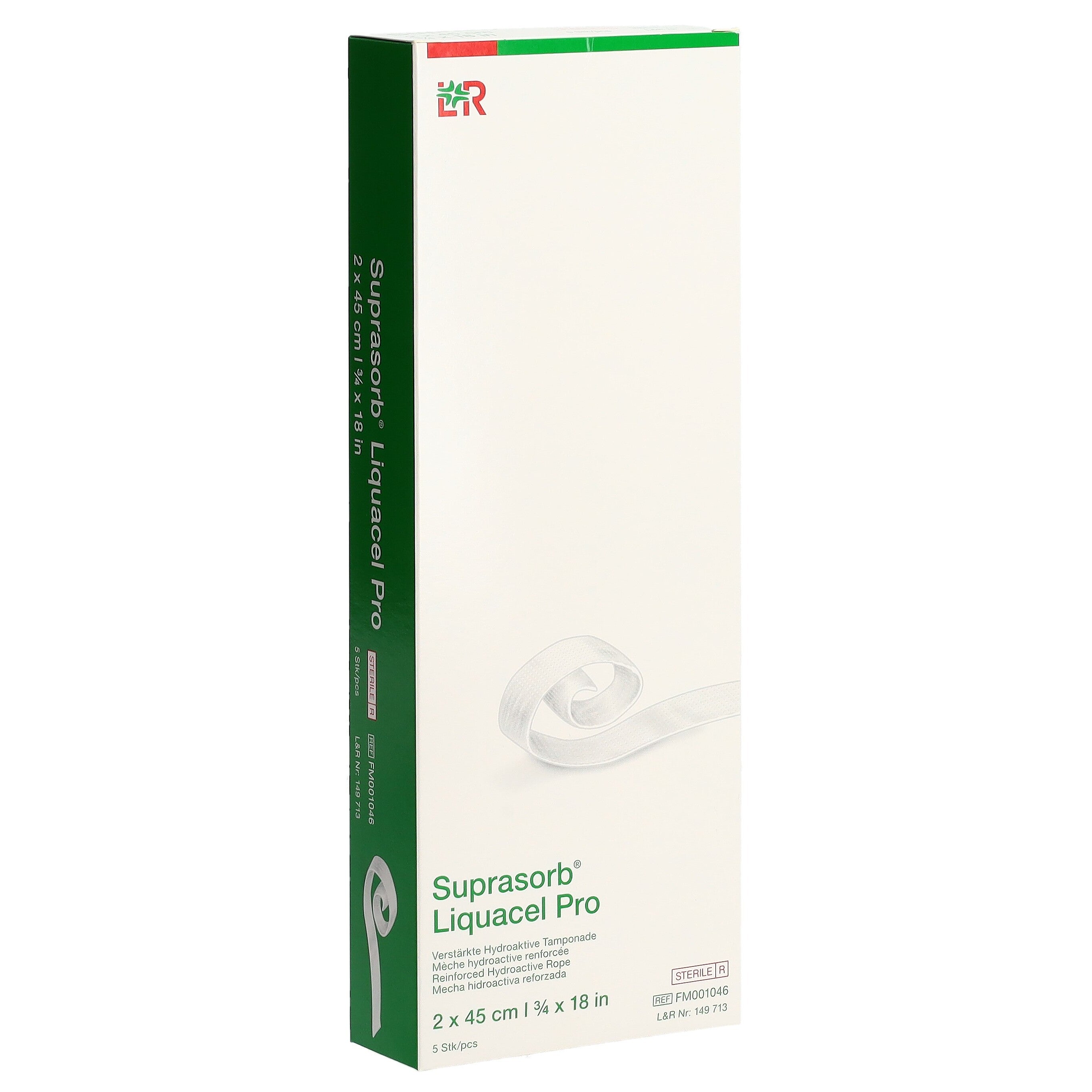 Suprasorb Liquacel Pro ist ein Wundverband mit weichem, anschmiegsamem Vlies aus Natrium-Carboxymethylcellulose (CMC) und verstärkenden Zellulosefasern. Bei Kontakt mit Wundexsudat oder Blut bildet der absorbierende Wundverband ein Gel, welches ein feuchtes Wundmilieu schafft. Durch die Lock-In Technologie werden im Wundexsudat befindliche Zelltrümmer und Bakterien im Faserverband gebunden und mit dem Verbandwechsel entfernt. Die hohe vertikale Exsudataufnahme in den Faserverband schützt das Wundmilieu und den Wundrand und unterstützt somit den Heilungsprozess.