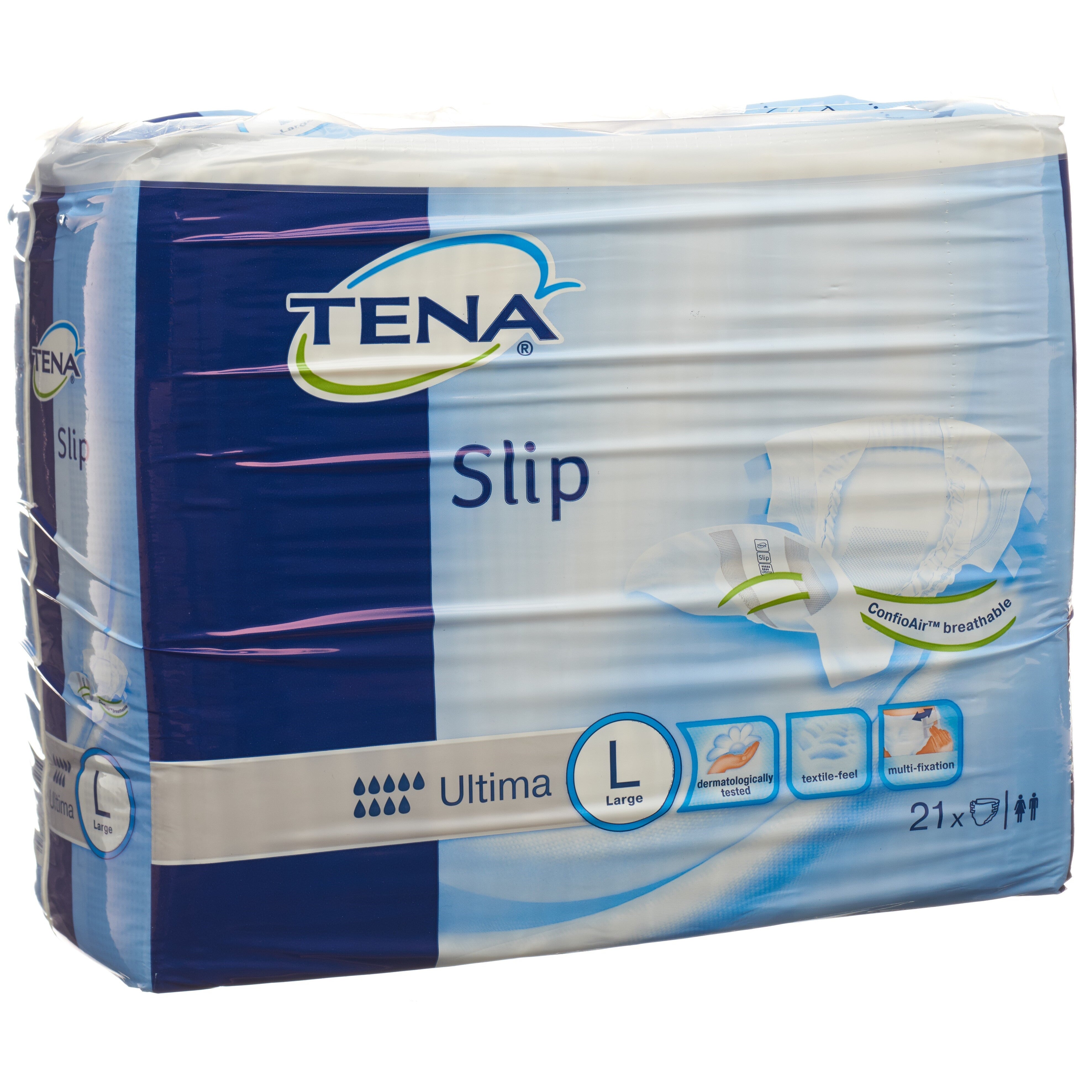 Der Tena Slip Ultima für schwere Inkontinenz besteht aus dem komplett atmungsaktiven ConfioAir-Material, welches Trockenheit, Komfort und eine gesunde Haut garantiert. Er eignet sich für grosse Mengen schwallartigen Urinverlust sowie für die Anwendung über Nacht. Extra breite Klett und Klebeverschlüsse garantieren einen komfortablen Sitz, wobei der Slip leicht anzulegen und mehrmals anpassbar ist. Der schnelle und hochabsorbierende Kern mit FeelDry-Technologie bietet ausserdem eine hohe Auslaufsicherheit, da selbst grössere Urinmengen schnell und direkt in das Innere des Kerns aufgenommen werden. Ein Nässeindikator an der Aussenseite färbt sich dabei von Gelb auf Blau, wenn es Zeit ist für einen Wechsel.