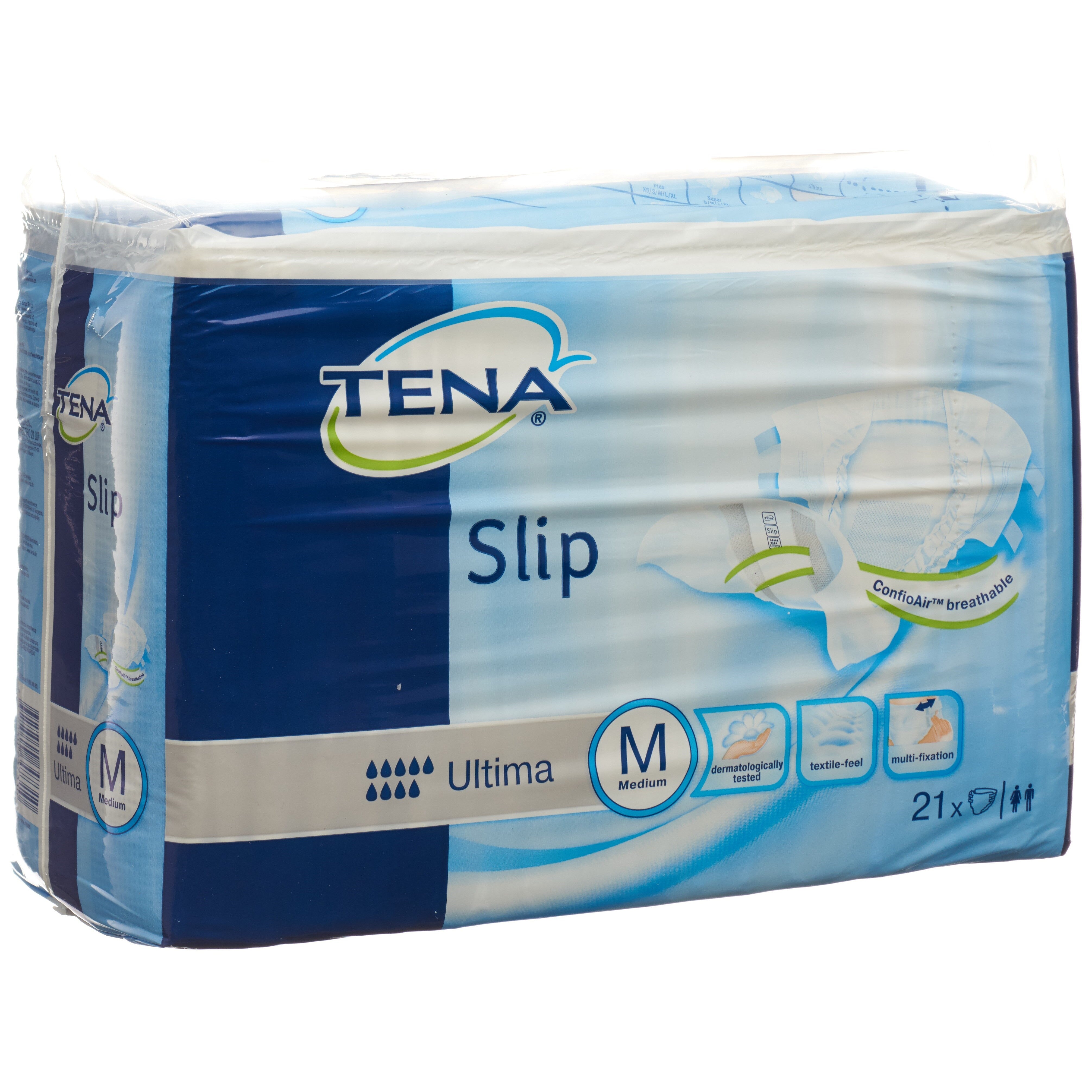 Der Tena Slip Ultima für schwere Inkontinenz besteht aus dem komplett atmungsaktiven ConfioAir-Material, welches Trockenheit, Komfort und eine gesunde Haut garantiert. Er eignet sich für grosse Mengen schwallartigen Urinverlust sowie für die Anwendung über Nacht. Extra breite Klett und Klebeverschlüsse garantieren einen komfortablen Sitz, wobei der Slip leicht anzulegen und mehrmals anpassbar ist. Der schnelle und hochabsorbierende Kern mit FeelDry-Technologie bietet ausserdem eine hohe Auslaufsicherheit, da selbst grössere Urinmengen schnell und direkt in das Innere des Kerns aufgenommen werden. Ein Nässeindikator an der Aussenseite färbt sich dabei von Gelb auf Blau, wenn es Zeit ist für einen Wechsel.