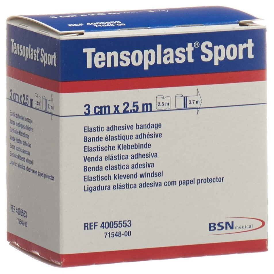 Tensoplast Sport ist eine elastische Klebebinde auf hochwertiger Baumwollbasis der in der Regel mehrere Tage ohne Qualitätseinbussen getragen werden kann. Das ermöglicht uneingeschränkte Beweglichkeit und hat eine hohe Dehnfähigkeit. Der latexfreie Kleber ist hypoallergen und in Längsstreifen aufgetragen um die Luft- und Flüssigkeitszirkulation zu ermöglichen.