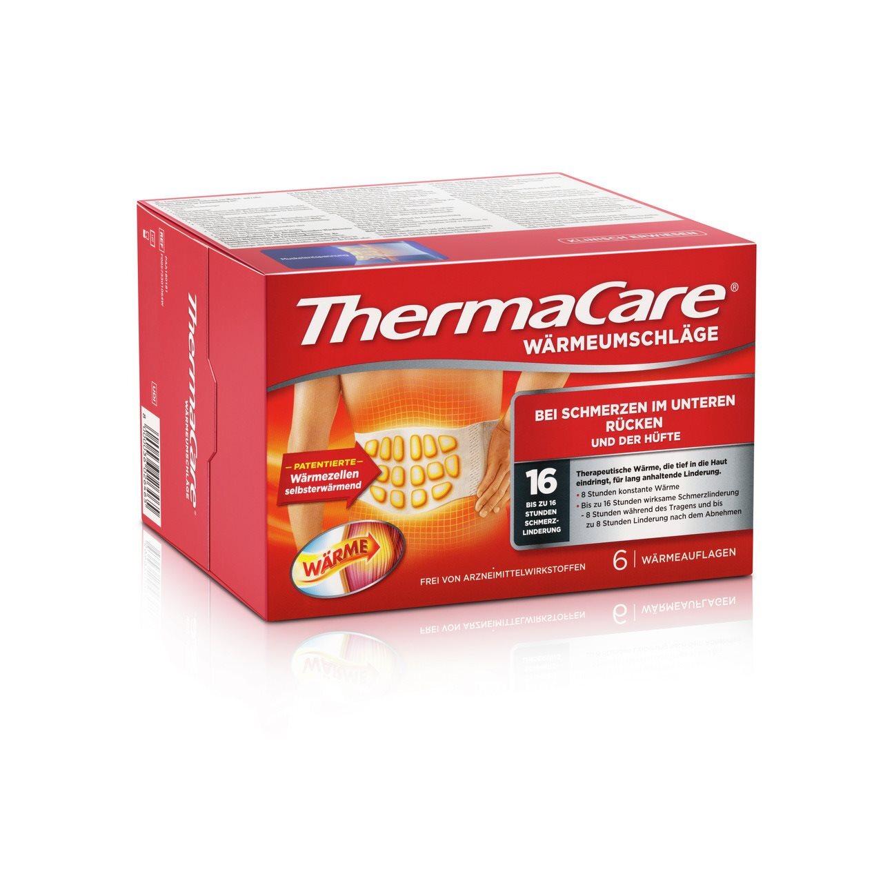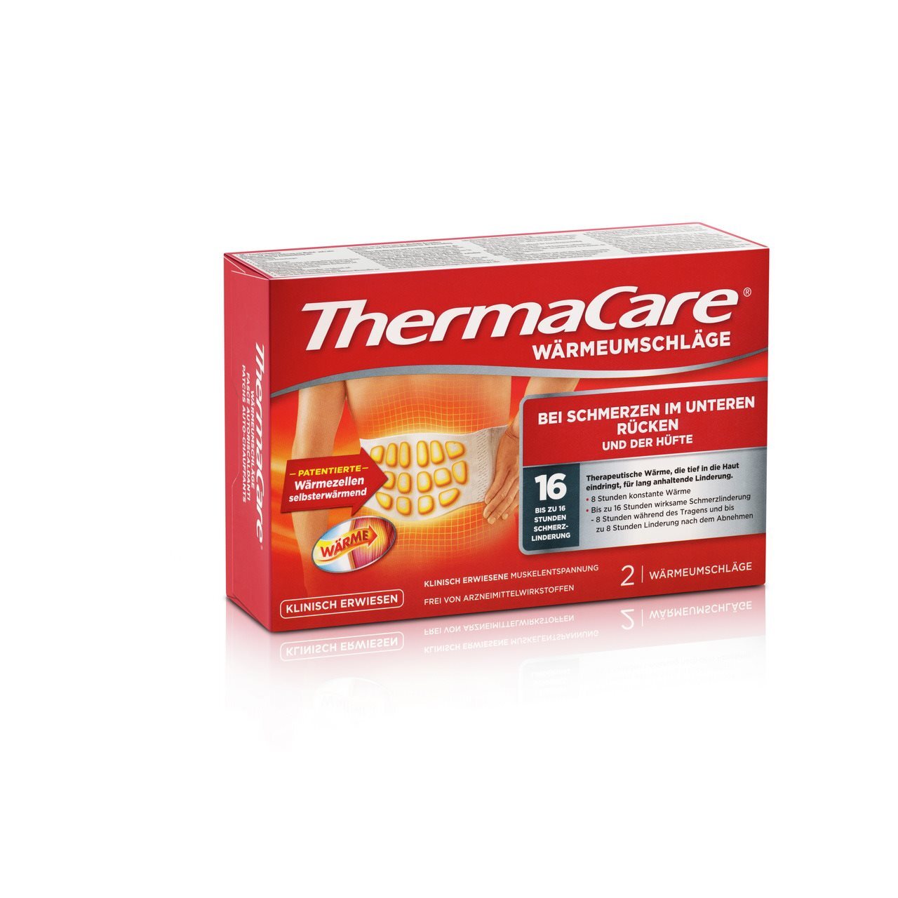 Bei Rückenschmerzen. Bis zu 16 Stunden Schmerzlinderung. Wirksame Schmerzlinderung durch therapeutische Tiefenwärme. Entspannt verkrampfte Muskeln. Frei von Arzneimittel-Wirkstoffen.