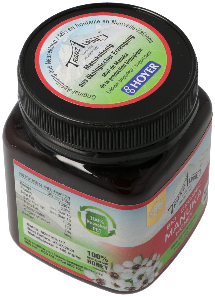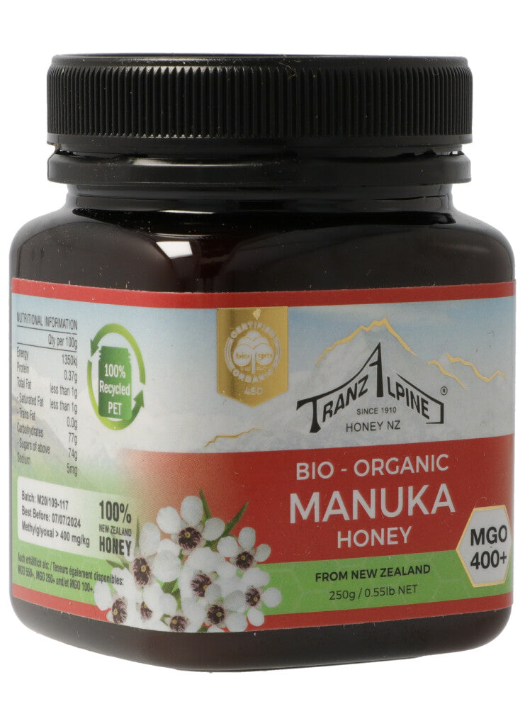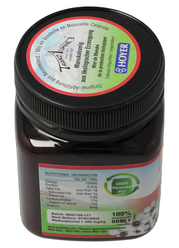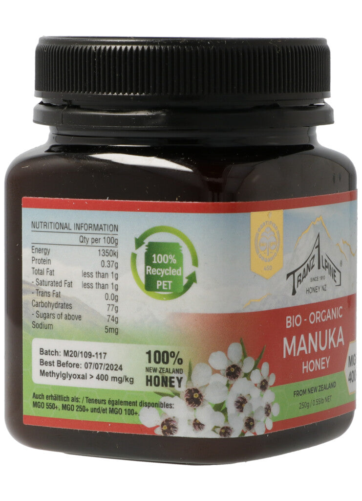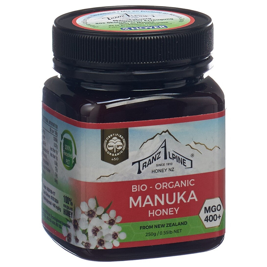 TranzAlpine Manukahonig MGO 400+ Bio Glas 250 g