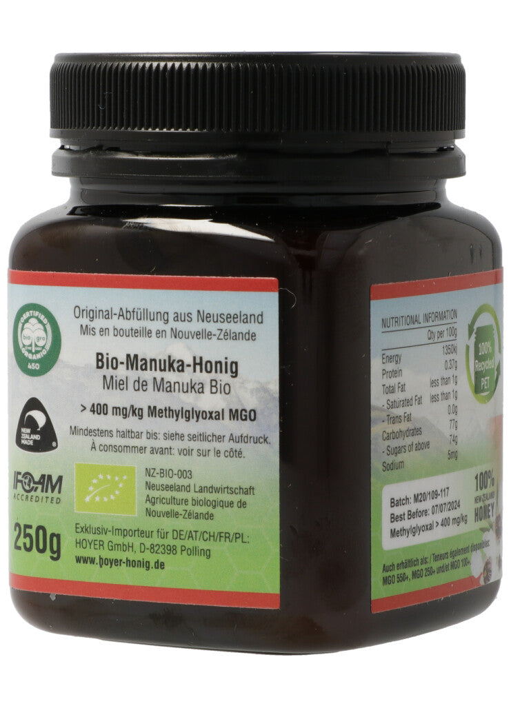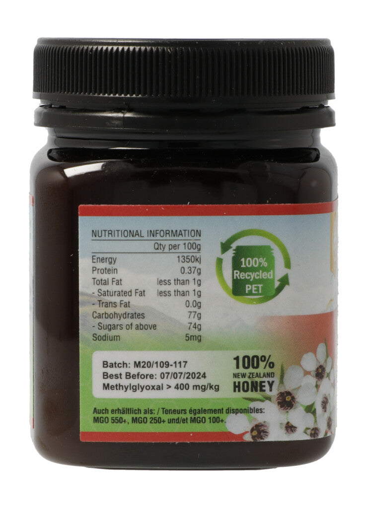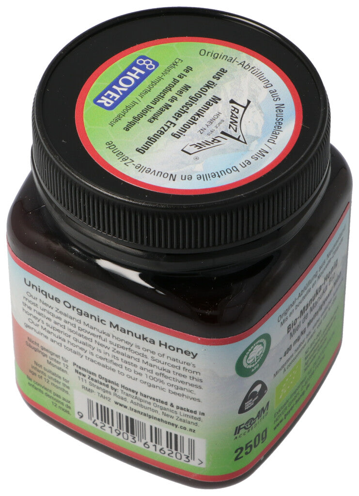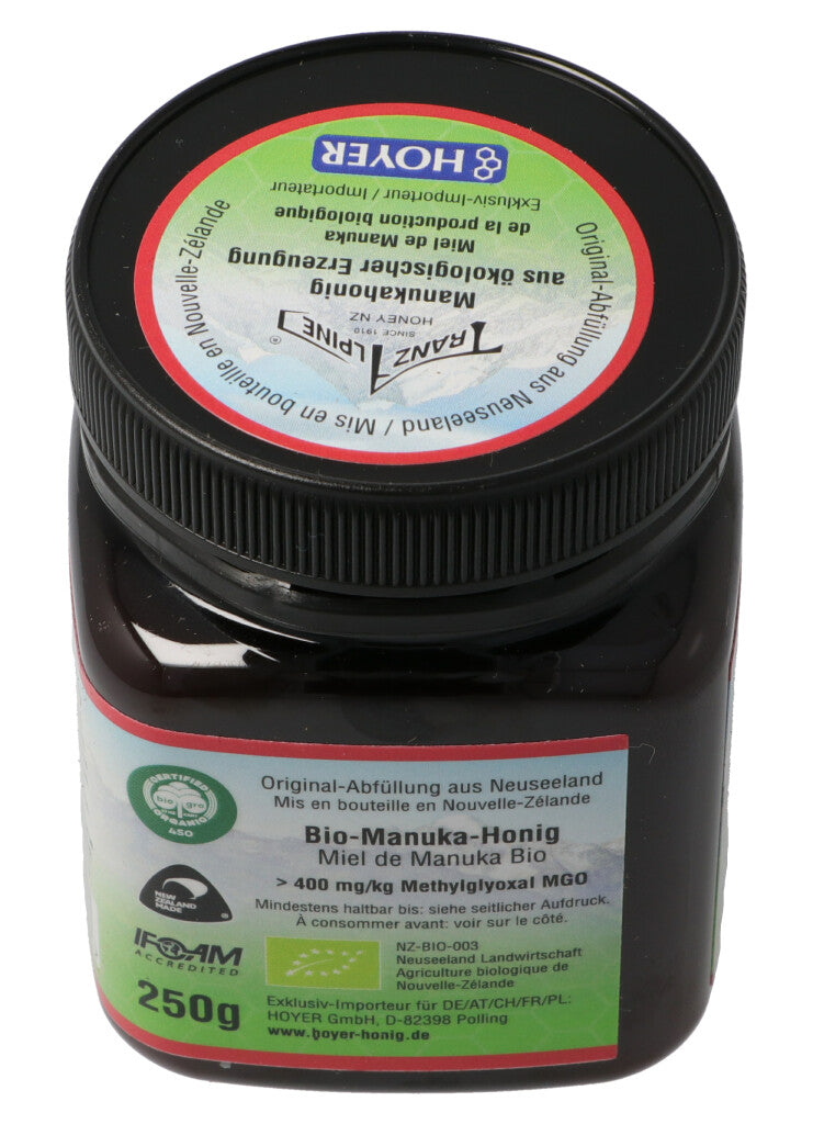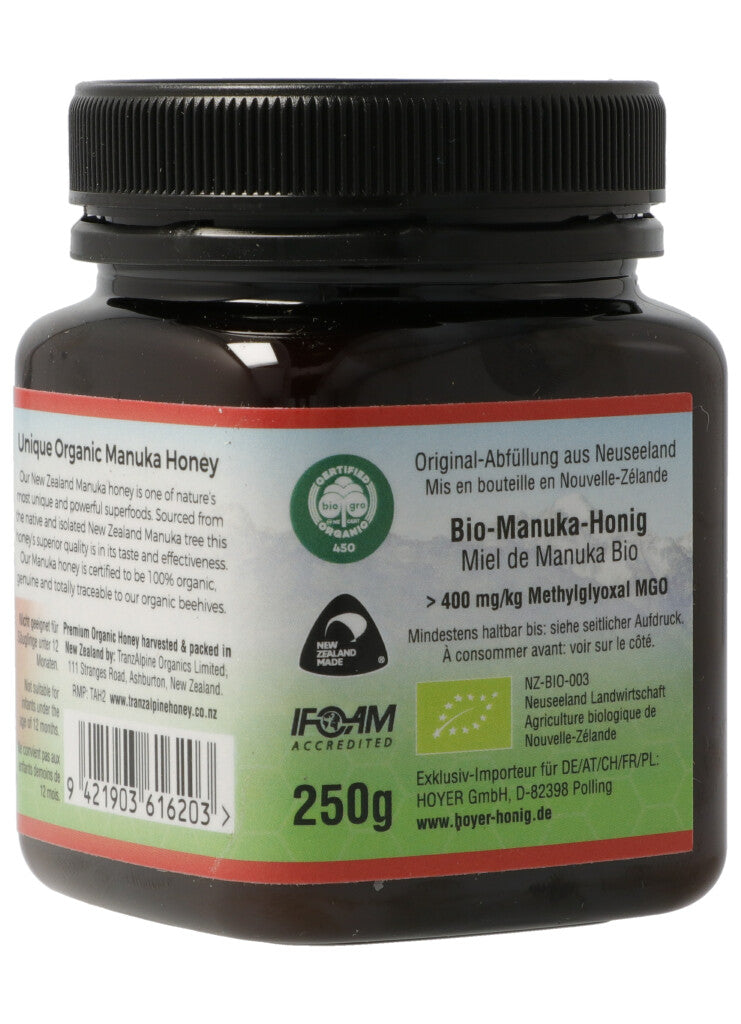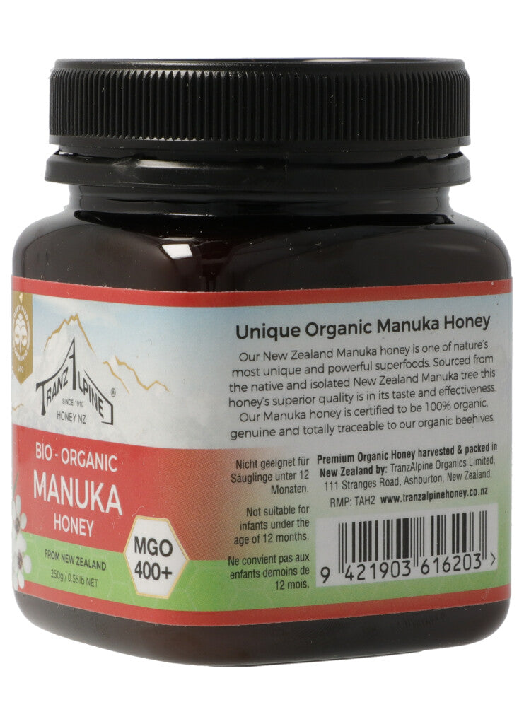 TranzAlpine Manukahonig MGO 400+ Bio Glas 250 g